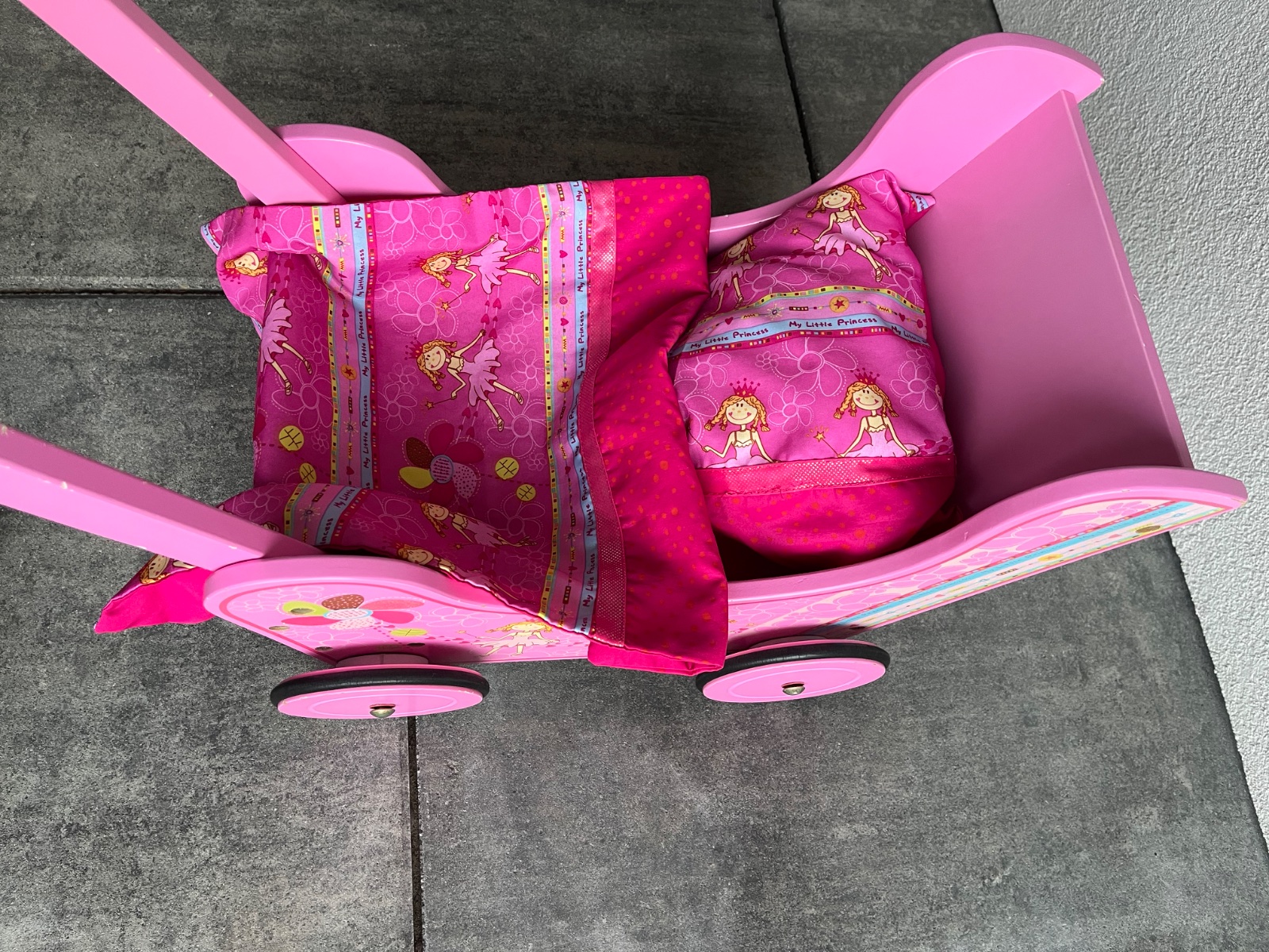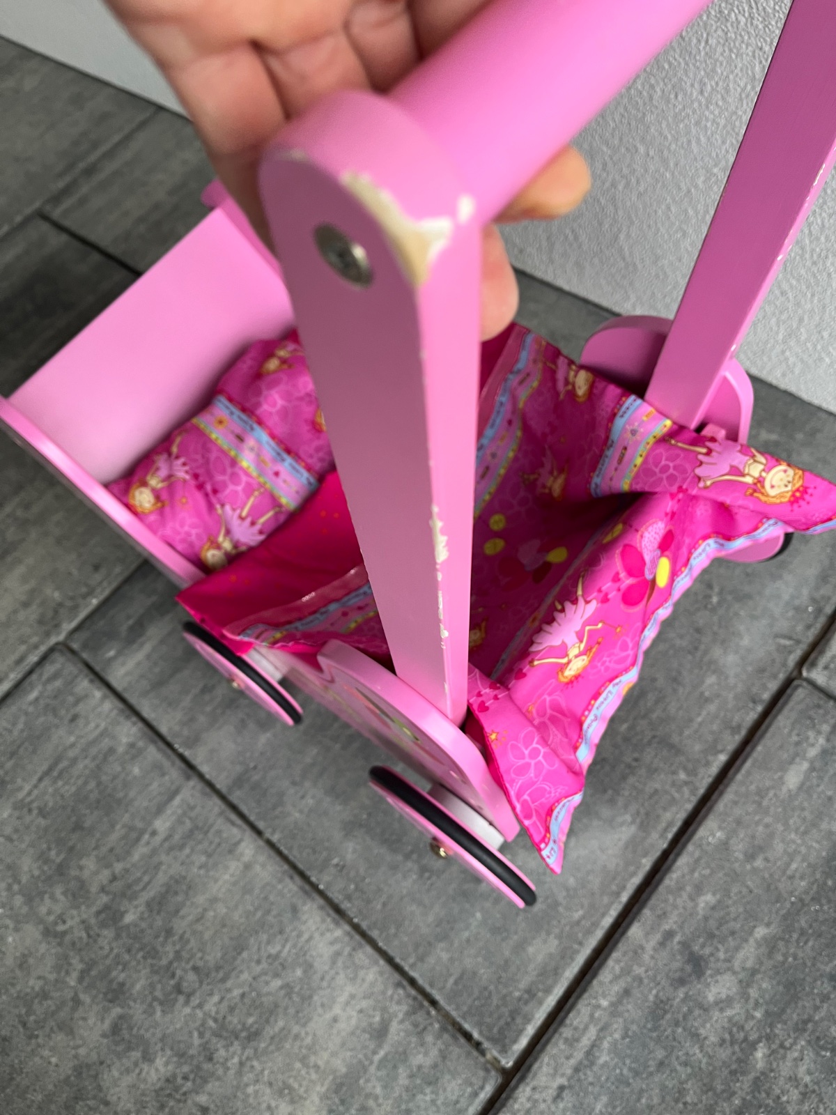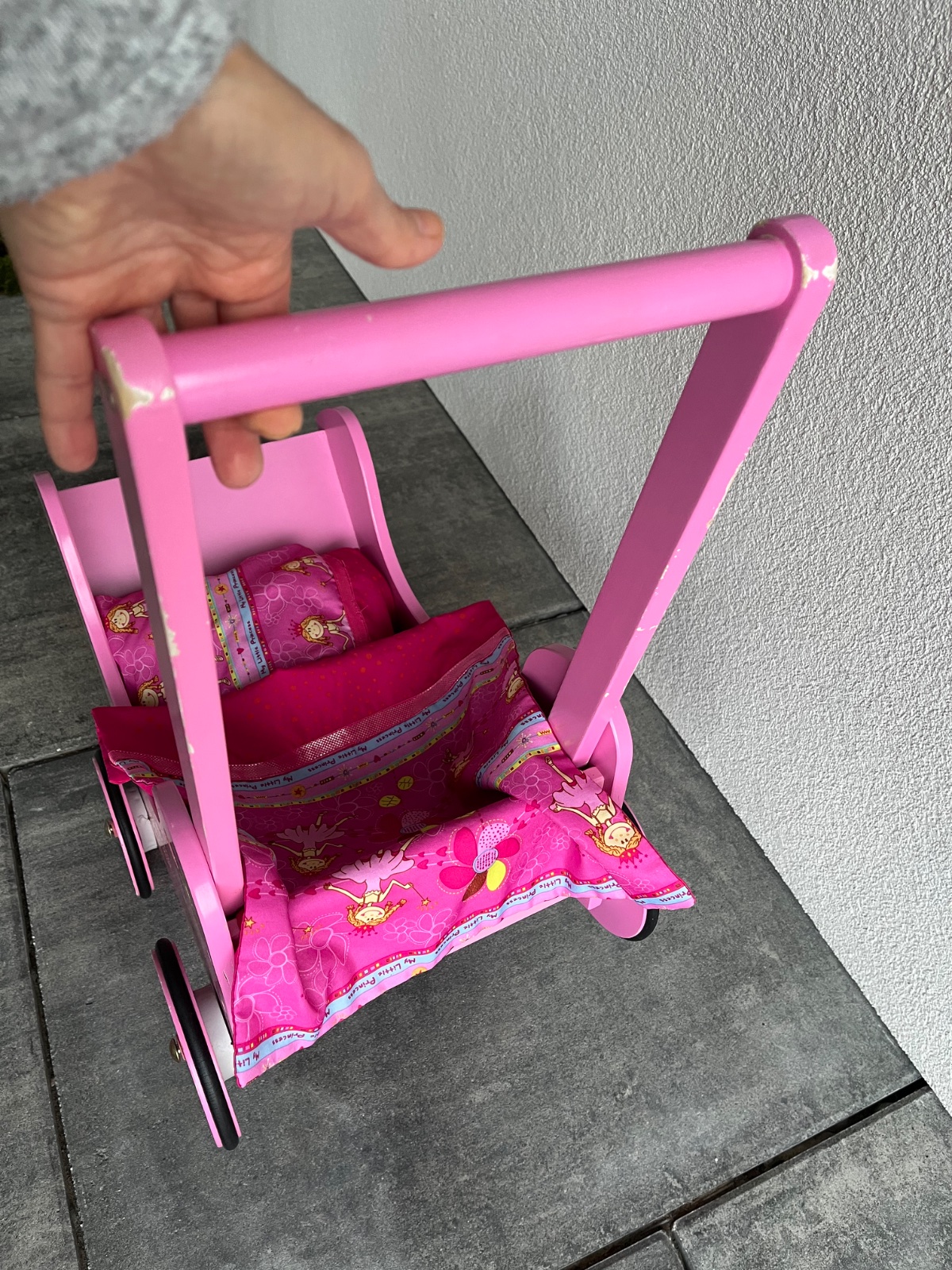 Dřevěný kočárek, včetně peřinek pro panenky, nebo plyšáky, který radosti ještě udělá nejedné holčičce mnoho. Ideální osobní převzetí Liberec. Něžná, nádherná malba se třpytkama. Funkční, drobné odřeninky a patinka.