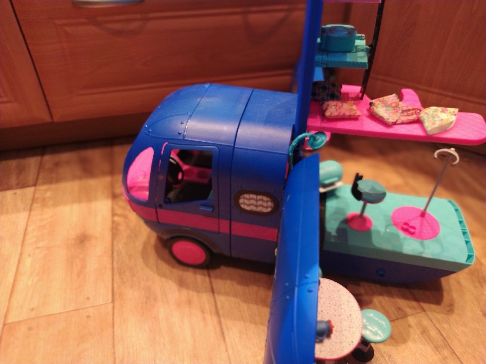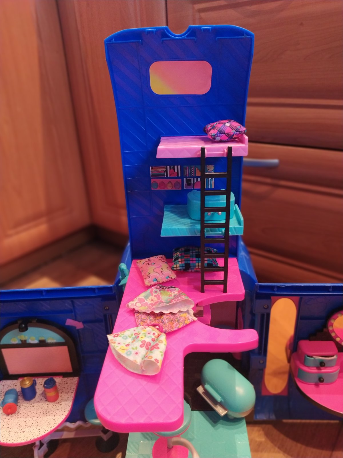 Karavan pro holčičky, super stav, viz foto. LOL Surprise OMG Glamper Fashion Camper.Jedná se o hrací sadu 4 v 1, kterou lze použít jako auto, dům, přehlídkové molo a bazén s osvětlením.