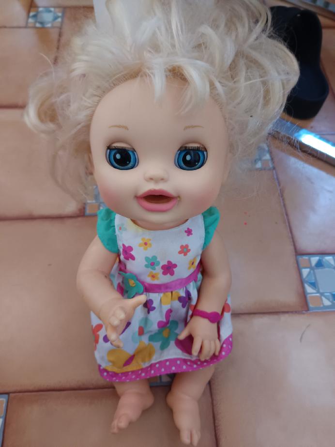Panenka je cca 30cm vysoká. Po vyndání dudlíku panenka pláče. Může i reálně ronit slzy - na hlavě má nádržku, kam se leje voda. PC: 949,- Zásilkovna 79,-