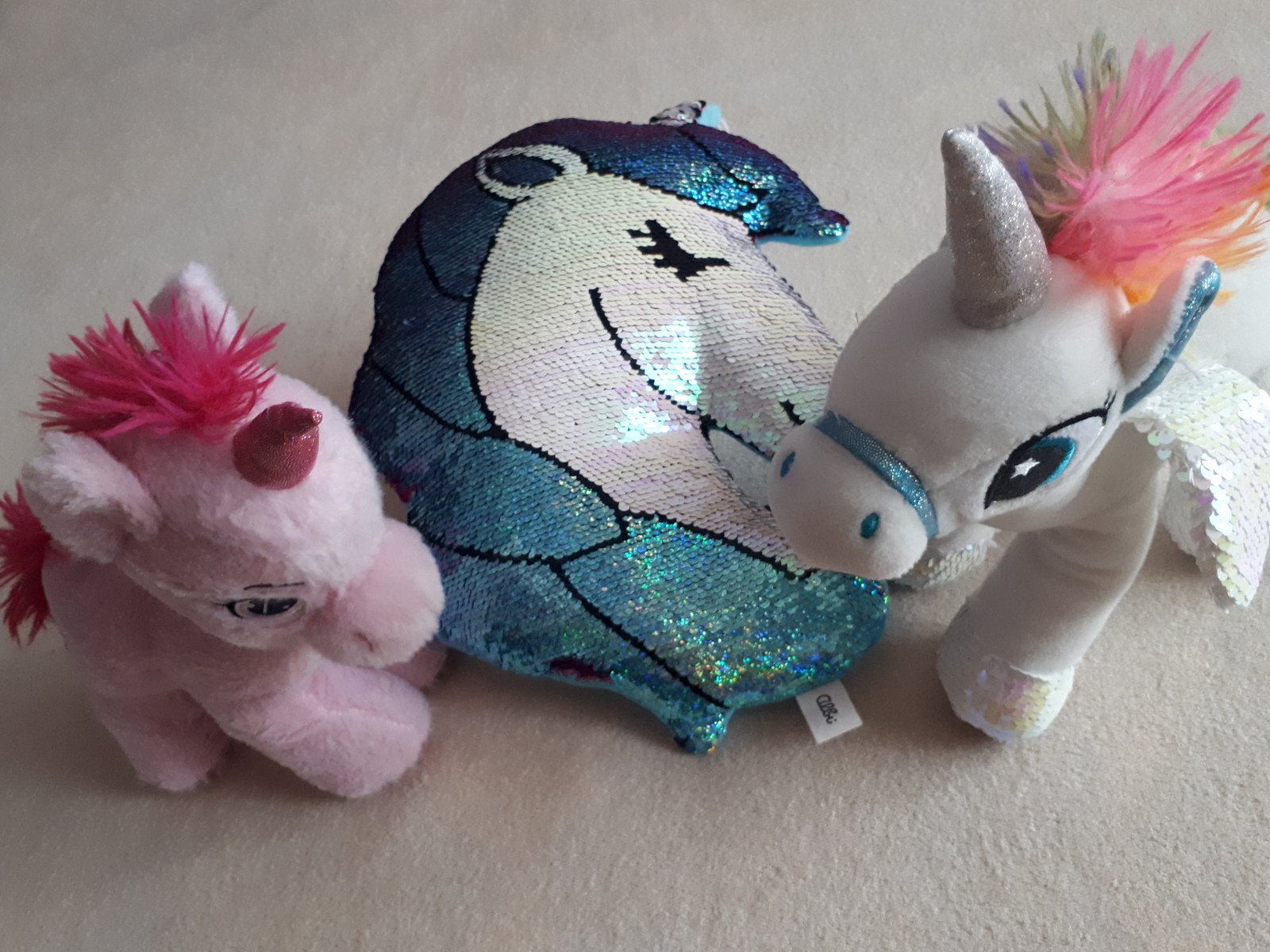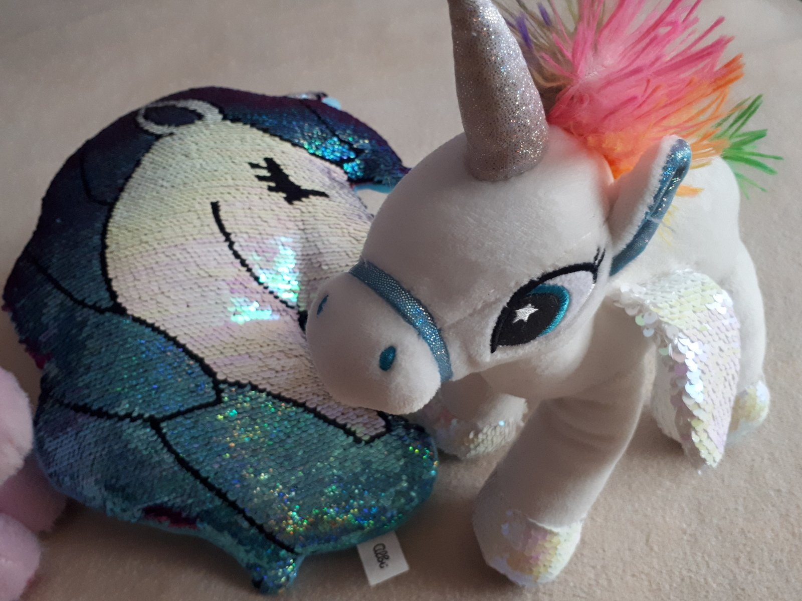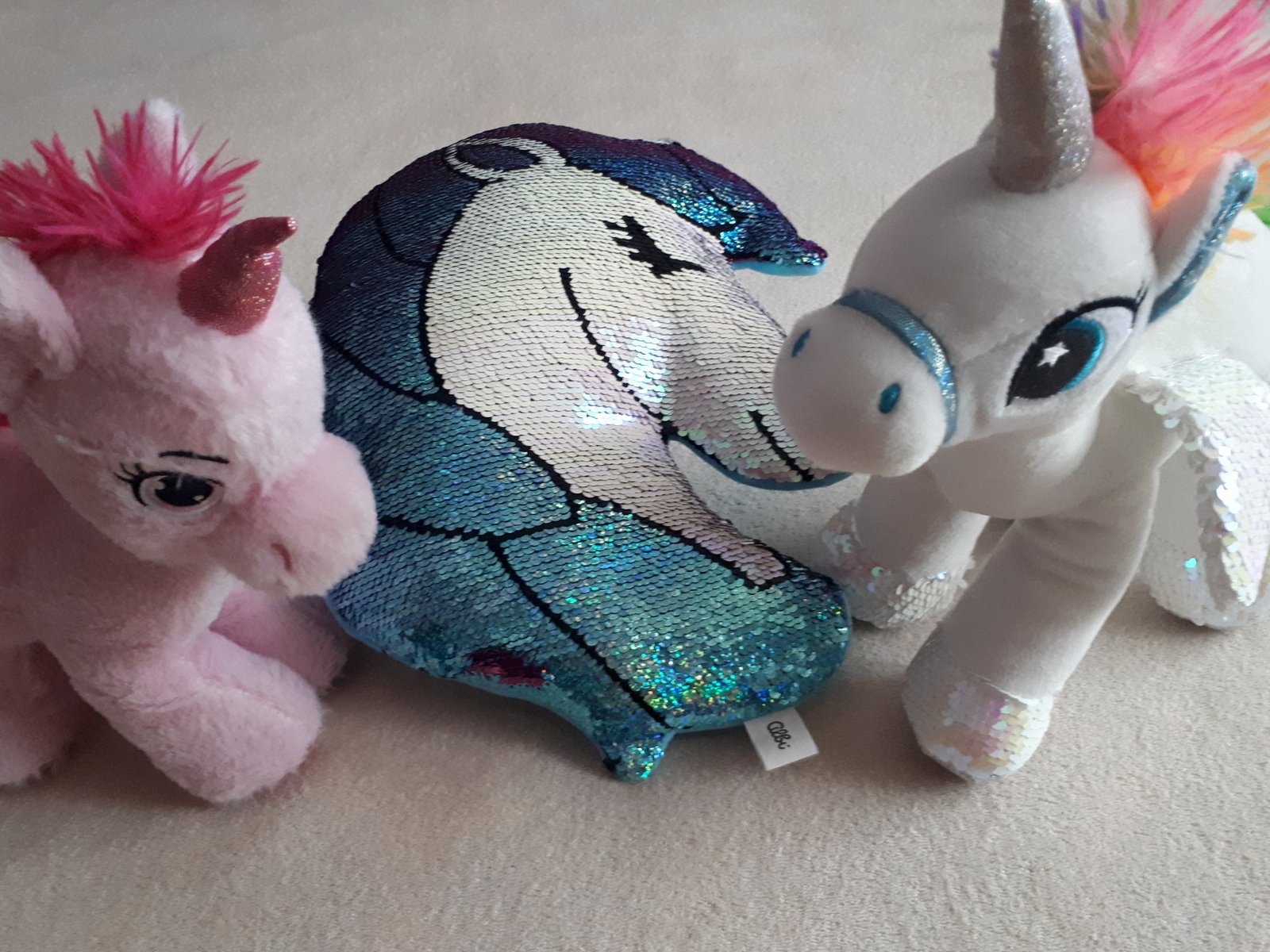 Plyšoví jednorožci, polštářek s měnícími flitry