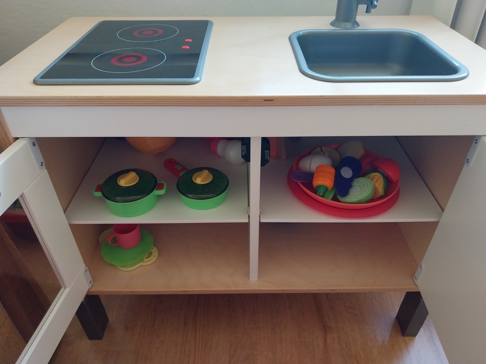Prodám dětskou, dřevěnou kuchyňku z Ikea. Nezničená, plotýnky svítí, kohoutek je otáčecí.