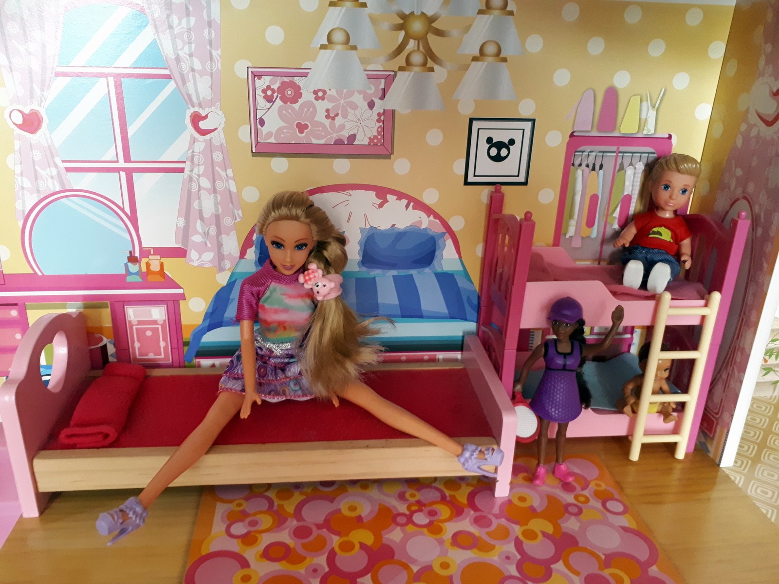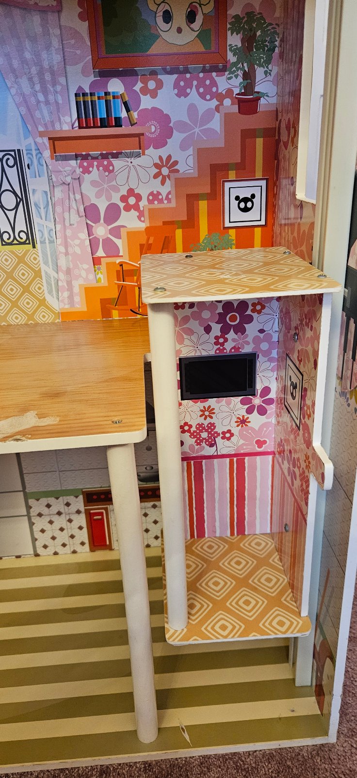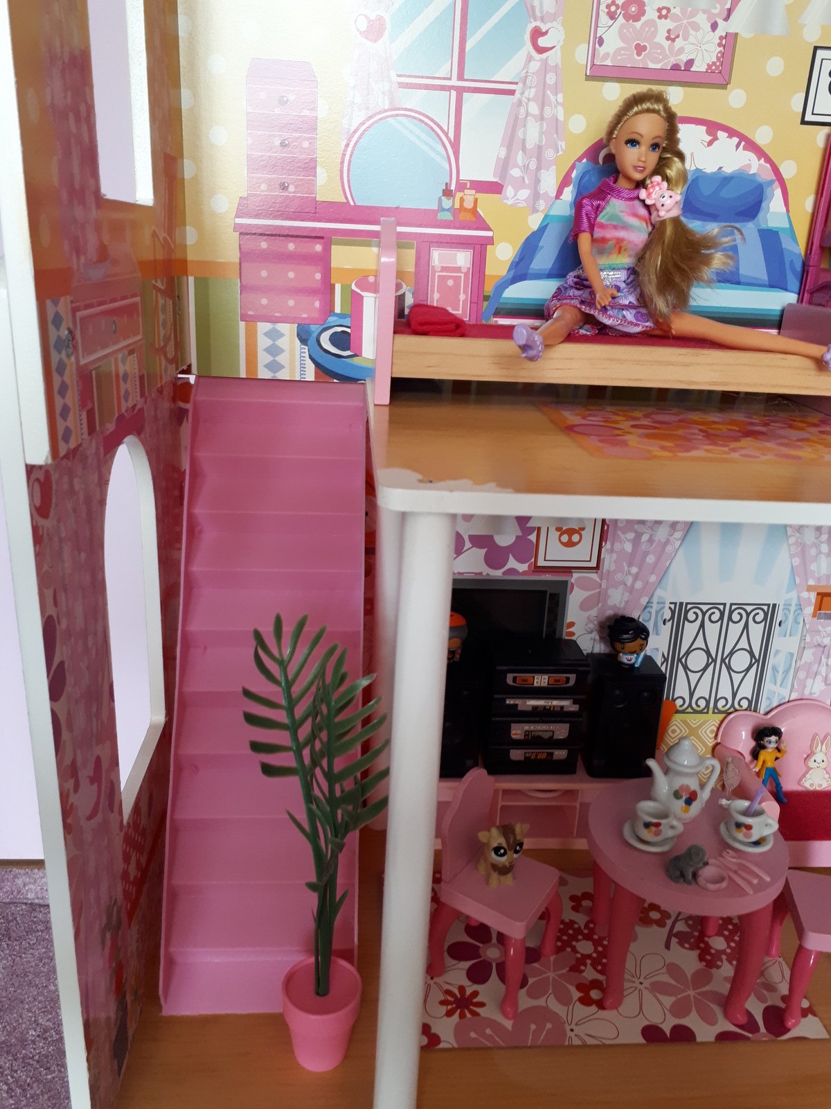 Prodám dřevěný domeček pro panenky s výtahem a vybavením, vše viz foto.