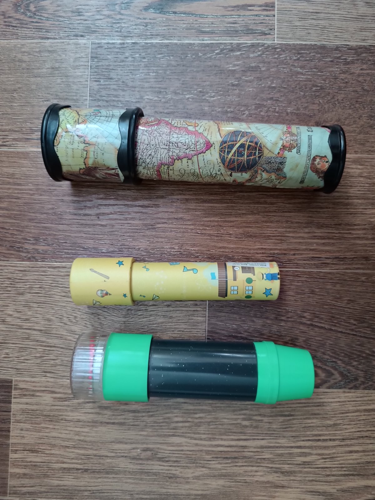 Prodám dětské kaleidoskopy/krasohledy, 3 kusy, hrané, jako nové, cena celkem.