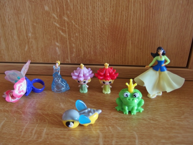 DÁRKY: přidávám jako dárek hračky z Kinder vajíček, které se hodí k této sadě a 2 funkční AAA baterie do domečku (nebyly součástí balení)
