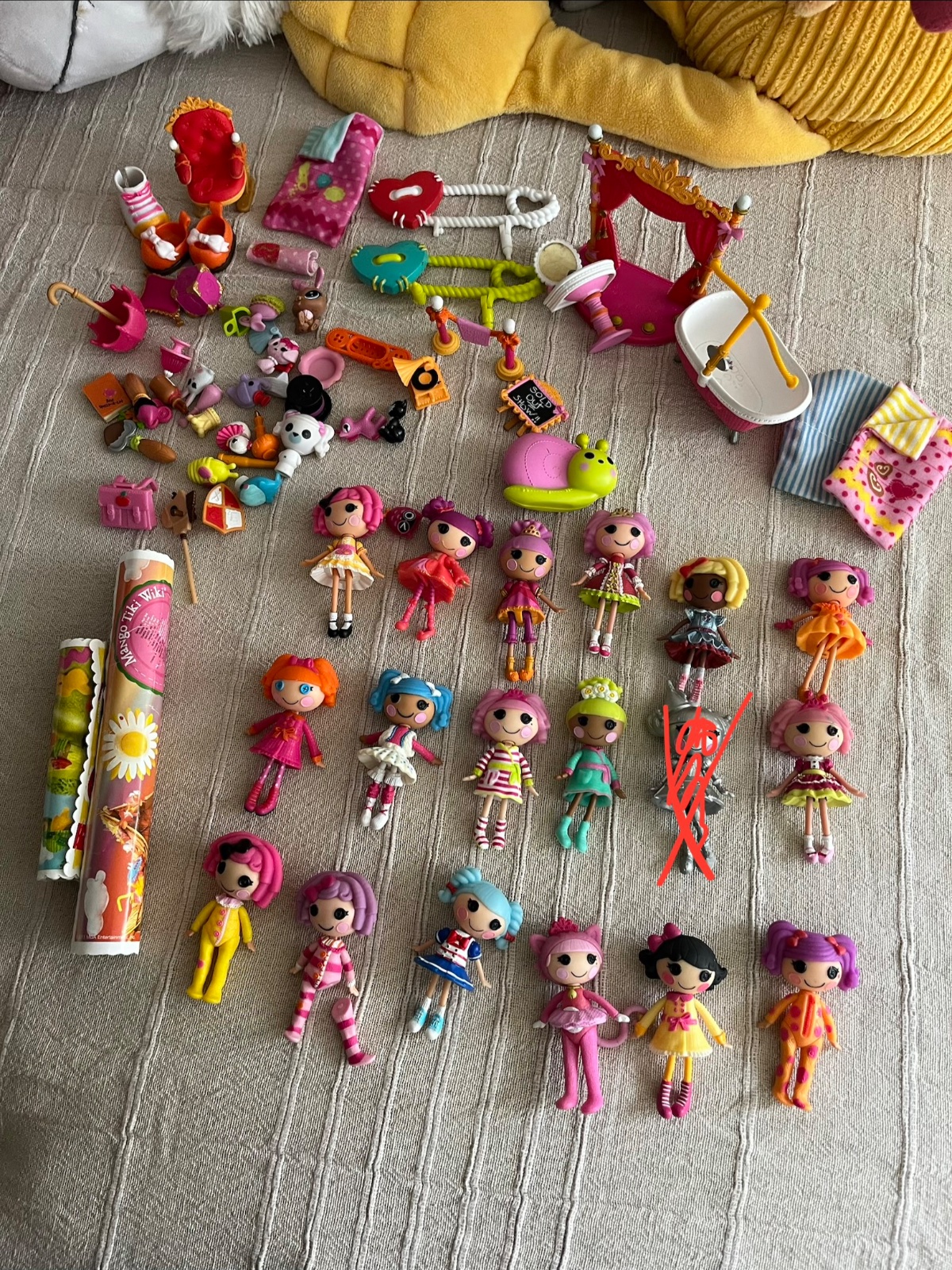 Hrané málo, jsou pěkně zachovalé, nějaké doplňky a drobnosti k tomu, něco tam může být i od vetší panenky, cena celkem, jednotlivě kus panenky 200 kc