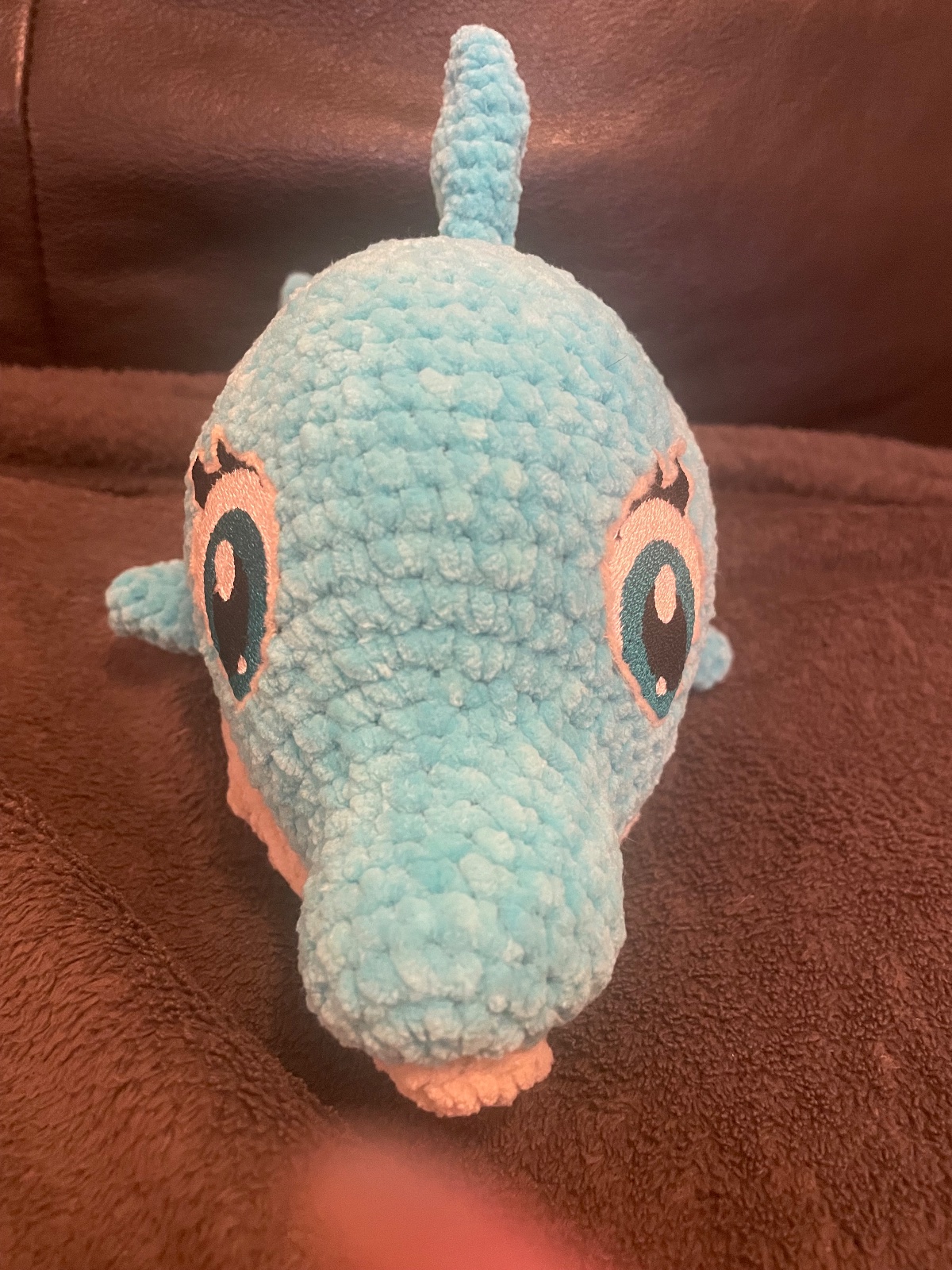 Háčkovaný delfín příze dolce baby,plněný dutým vláknem,délka 27 cm.