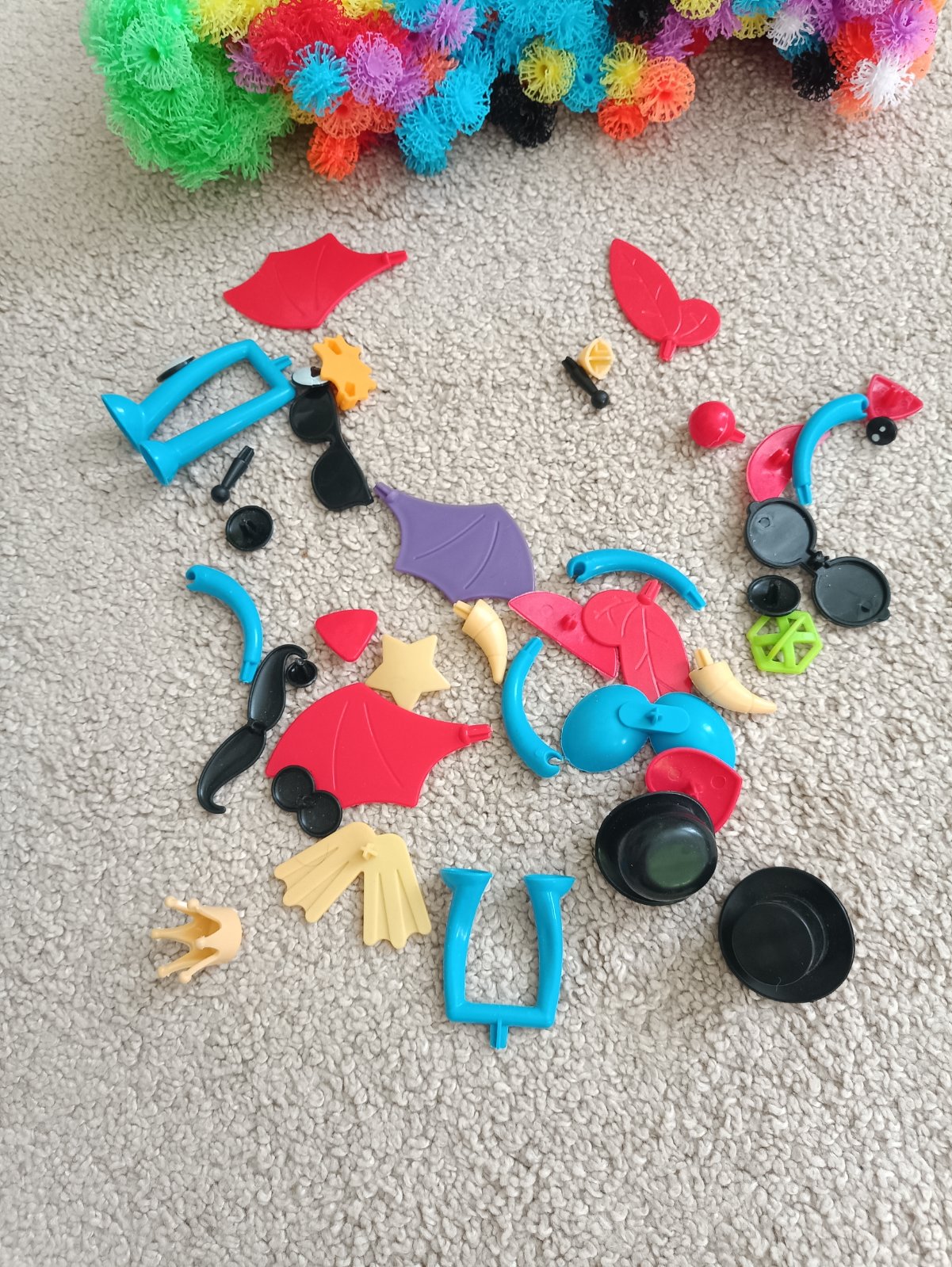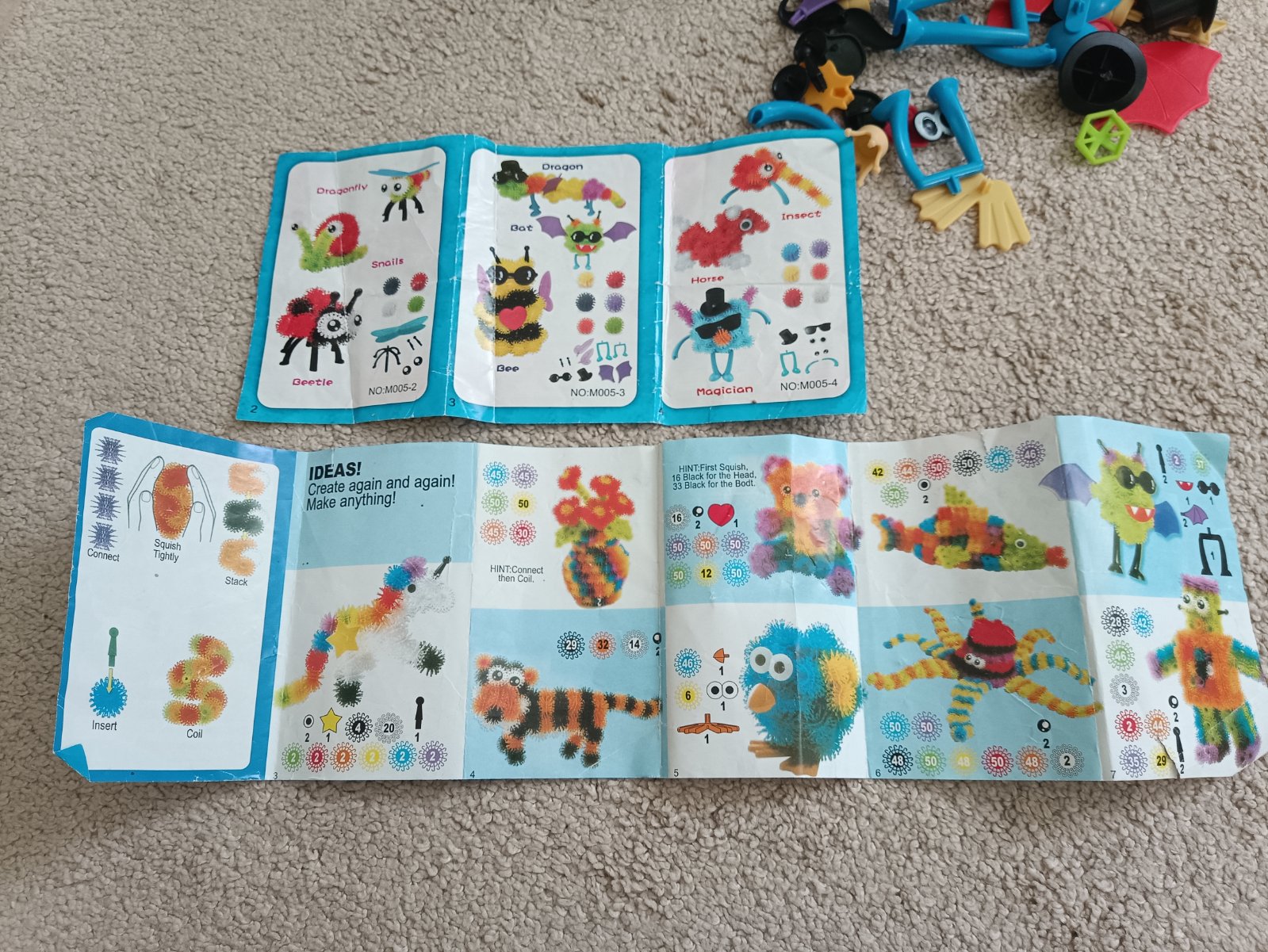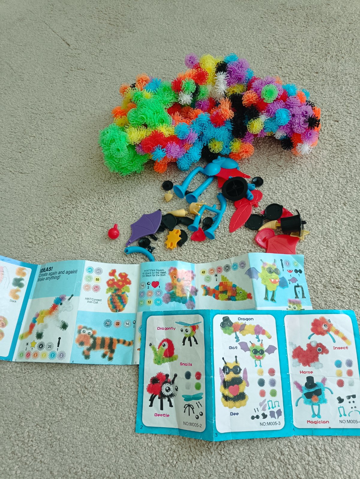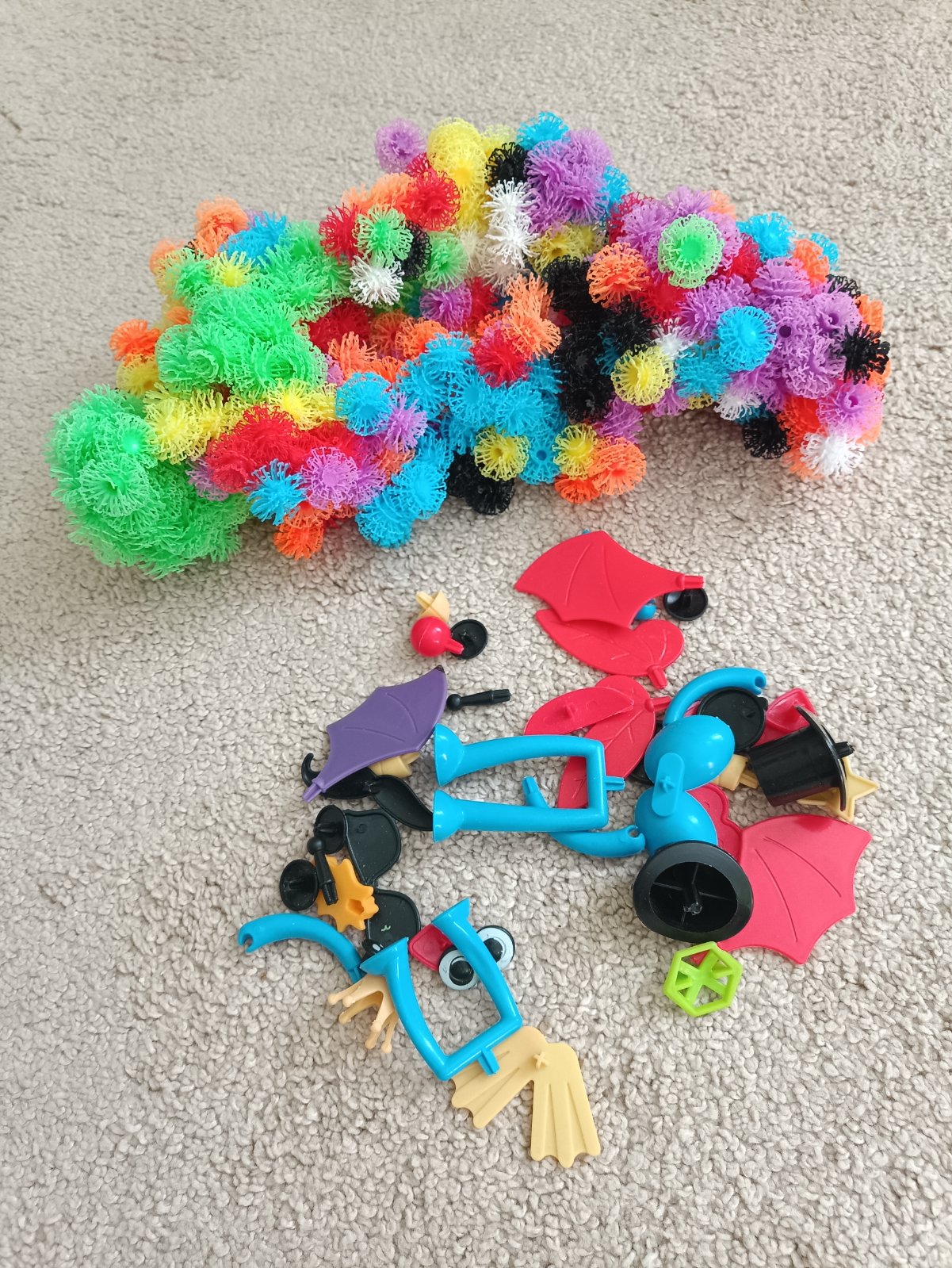 Kreativní sada Bunchems. Lepící kuličky cca 400ks +doplňky a dva návody pro typy na sestavení. Jsou to dvě sady zvláště kupované. Bez krabice,pouze v sáčku