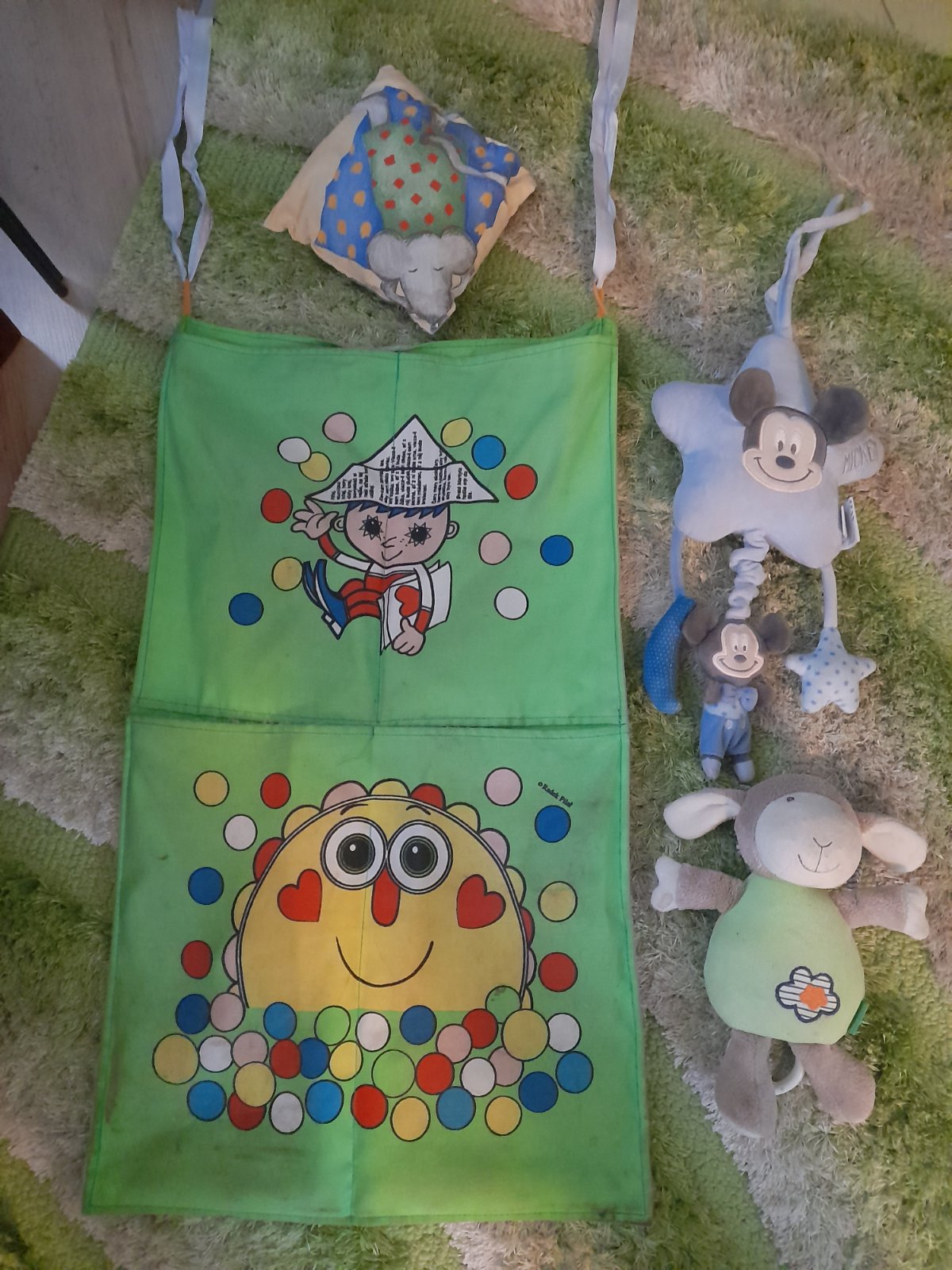 Hrané ale dobrý stav. Kapsář 50, hračka 30, polstarek zdarma k něčemu.