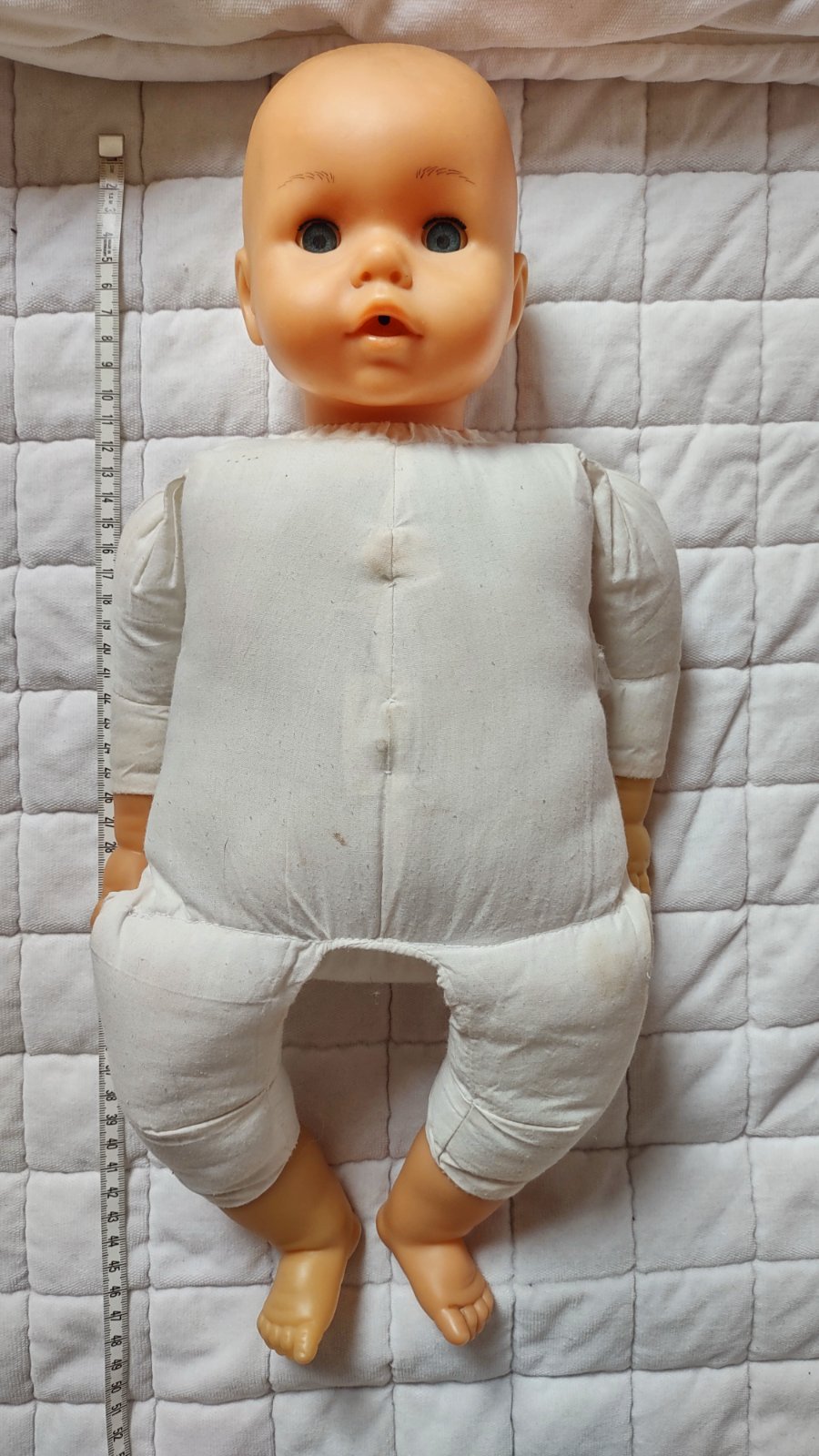Panenka je používaná. Vydává autentické miminkovské žvatlání. Je na tři tužkové baterie. Přidám i pár oblečků, viz foto. Je nevypraná.