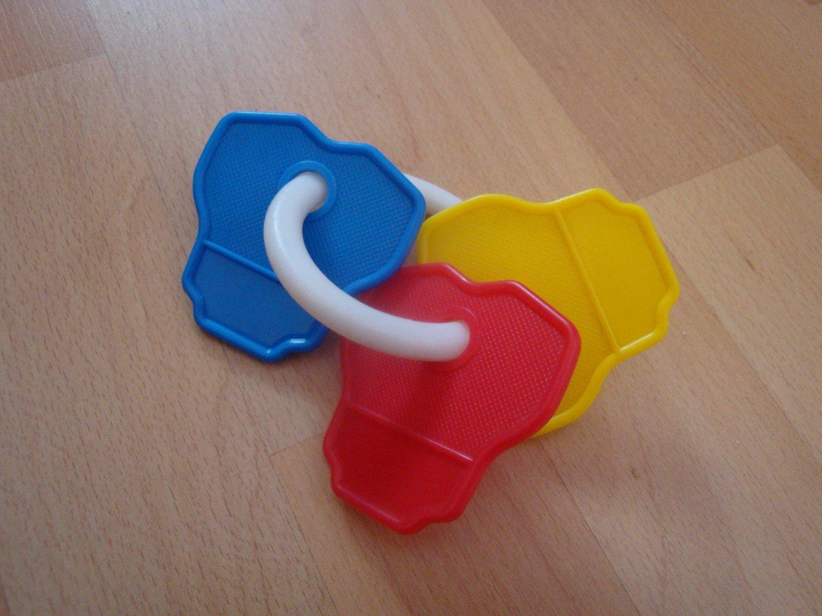 Pěkné chrastítko ve tvaru klíčů, velmi oblíbené dětmi. Velmi dobrý stav. Výše poštovného činí 25,-Kč obyčejně nebo 49,-Kč doporučeně. Pro více informací mě prosím kontaktujte.