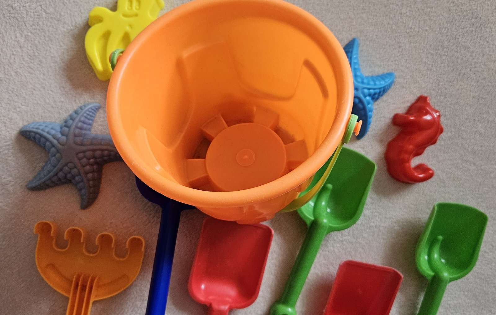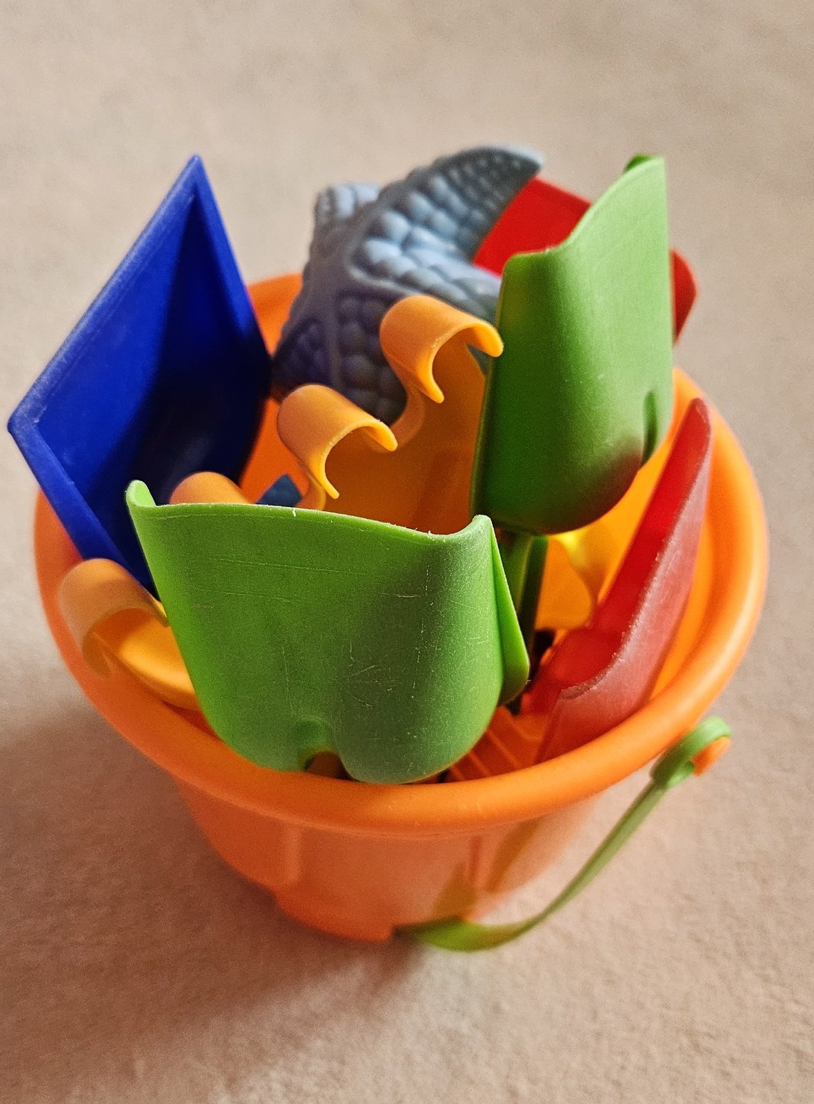 Prodám ve velice pěkném stavu kyblík s bábovkami a lopatkami na písek.