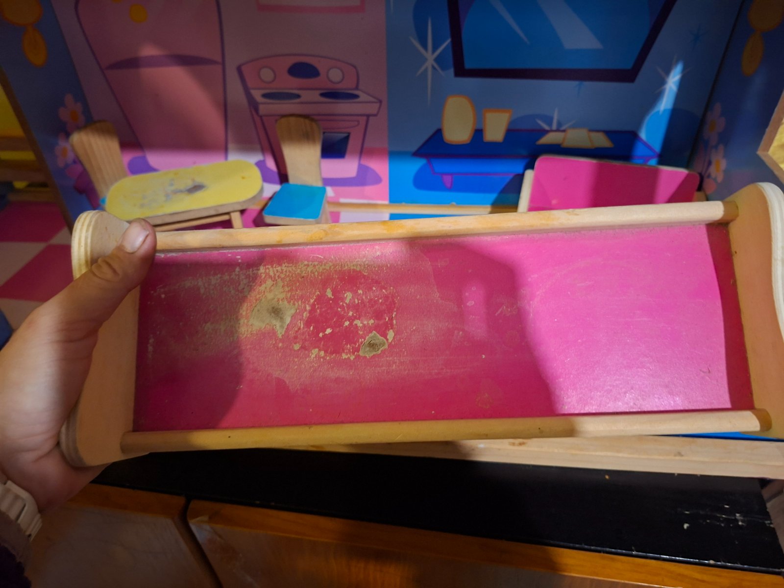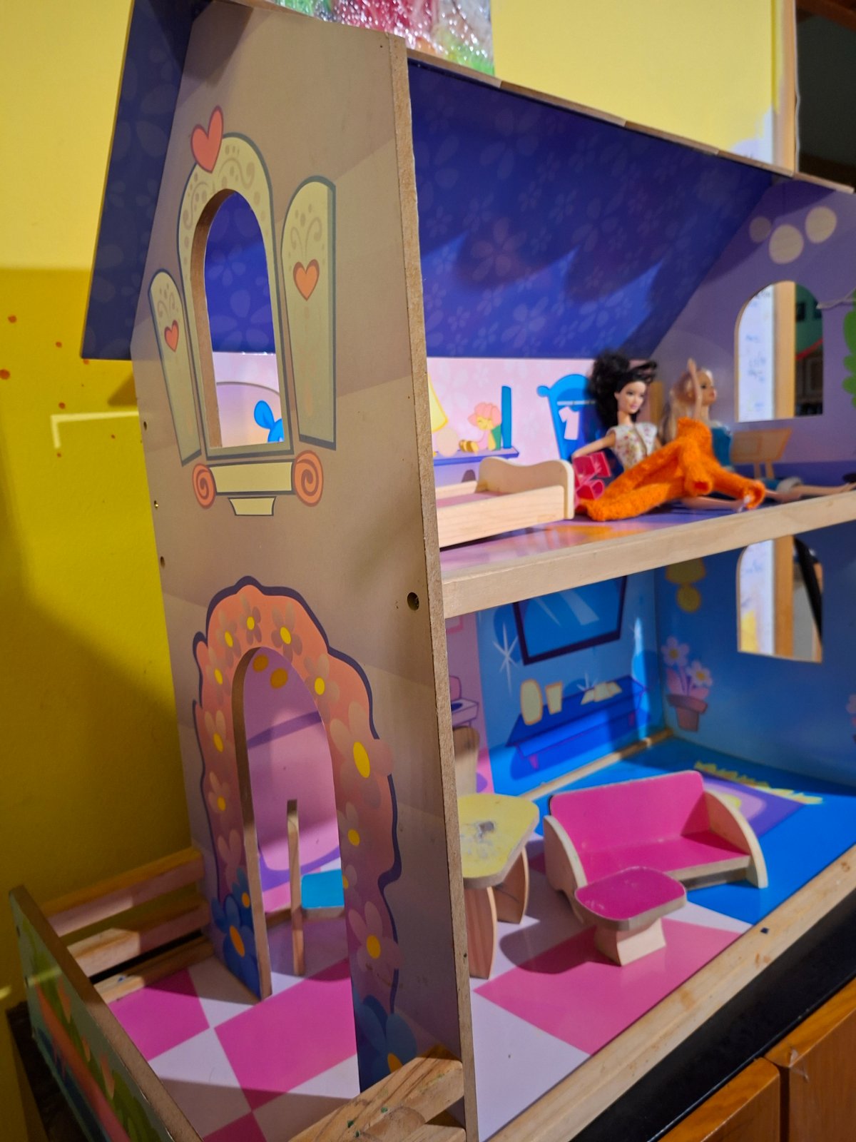 Pošlu dál dřevěný domeček pro panenky,..nese známky používání..je dřevěný, občas někde prodřená barva a stolečky holky užívaly tak úžasně, ze to jde vidět 😅 nedostatky vyfoceny. Díky tomu i nízká cena, nebo jsem ochotná se domluvit. Jinak je pevný. Starý cca 5 let.
