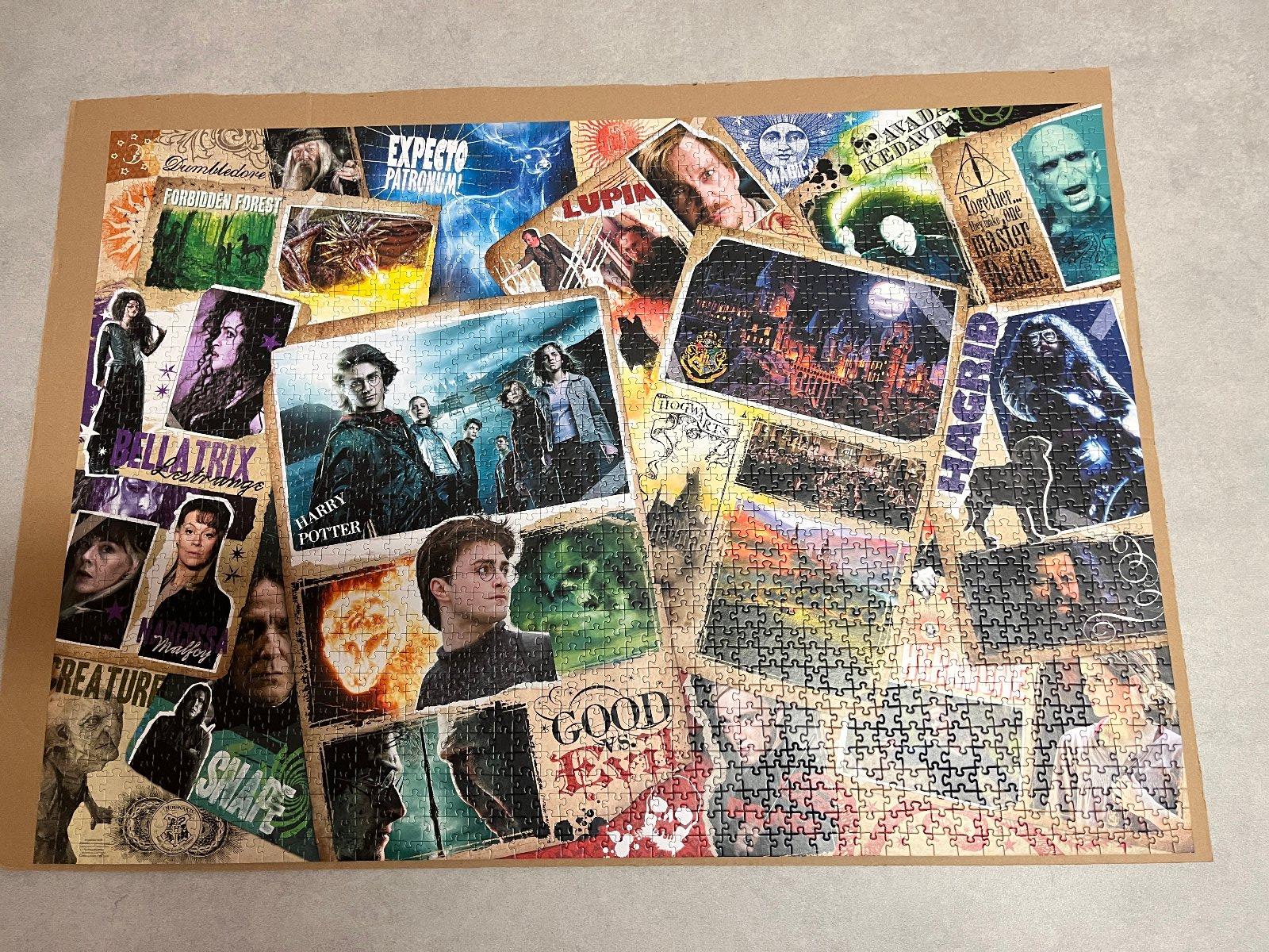 Puzzle - materiál papír, 2000 dílků v balení, rozměry sestaveného puzzle 68 × 96 cm (V׊), motiv Harry Potter
