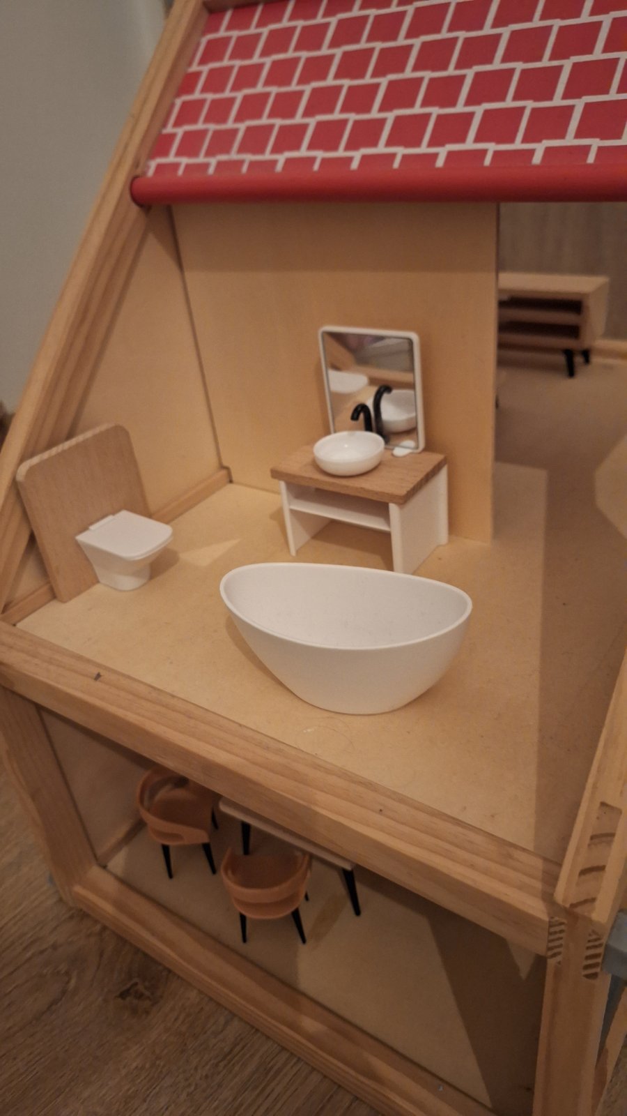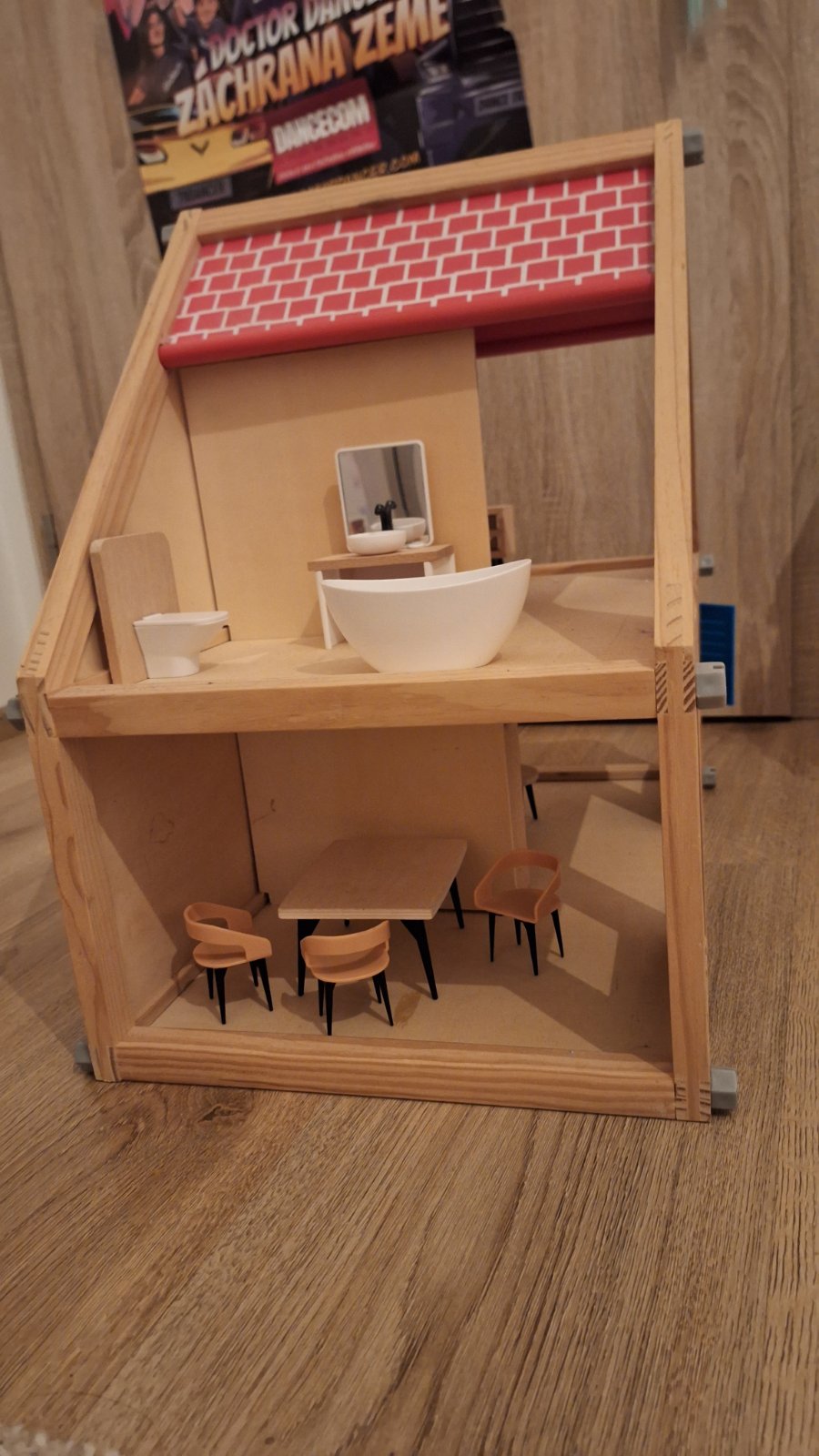 Hezký dřevěný domeček pro panenky.Velmi málo hrany,v hezkém stavu.Cena za domeček-samotny domeček prodaný.Mohu jednotlive prodat i příslušenství,koupelna 160kc-prodáno, ložnice 130kc, kuchyň 160kc-...