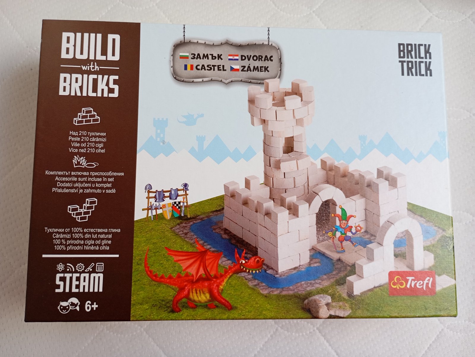 Výrobce Trefl. 100% přírodní hliněné cihličky. Více než 210cihel plus příslušenství - sada obsahuje všechny prvky k vytvoření zámku včetně lepidla.