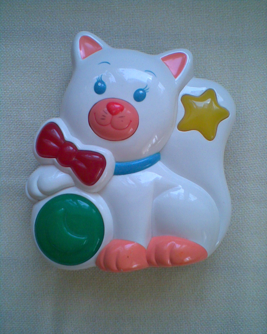nová kočička po zmáčknutí míčku, mašličky a hvězdičky hraje různé melodie a barevně svítí, plyšová kočička, plastová, nočník, knížka tvrdé rozkládací stránky, zdarma skákadlo