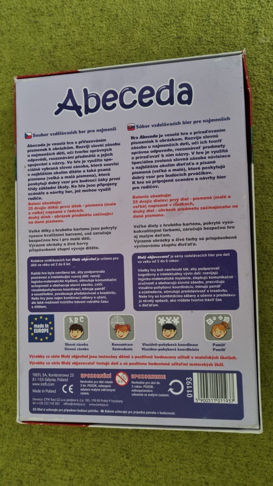 Nabízím hru Abeceda, je kompletní, v dobrém stavu, jen krabice trochu pomuchlaná