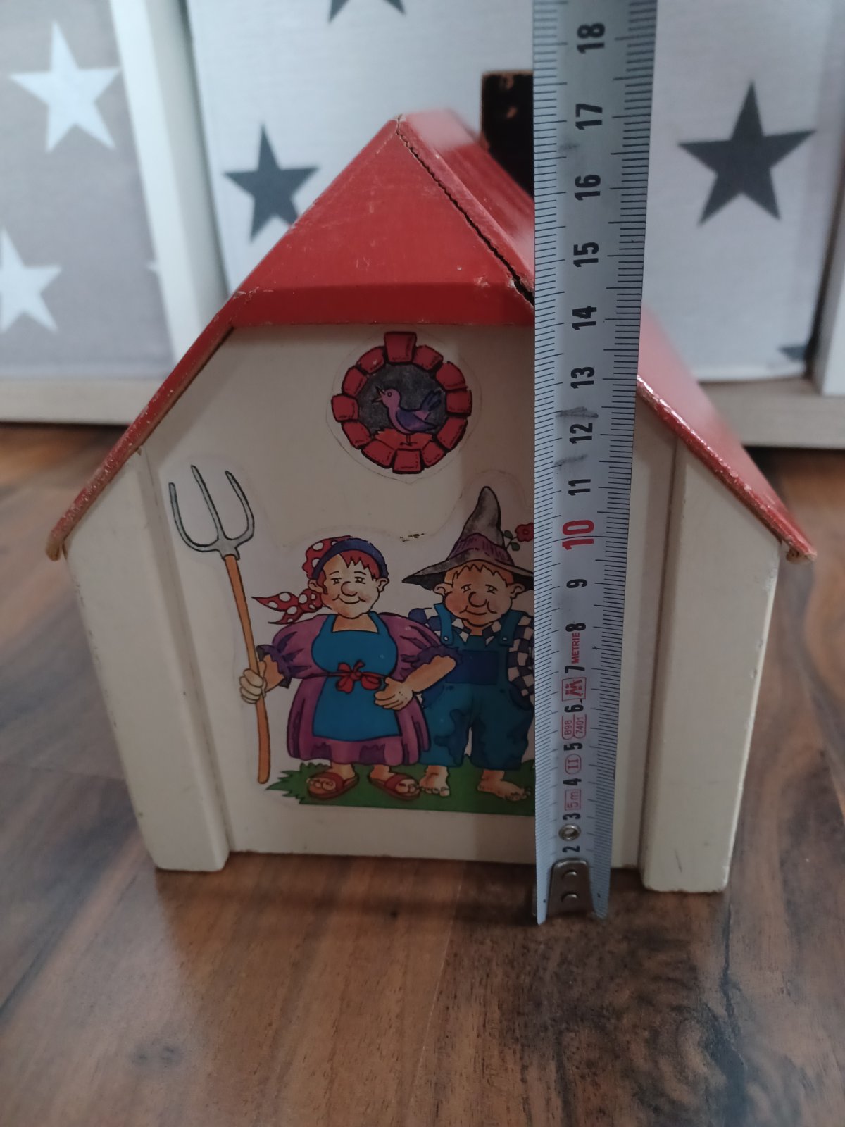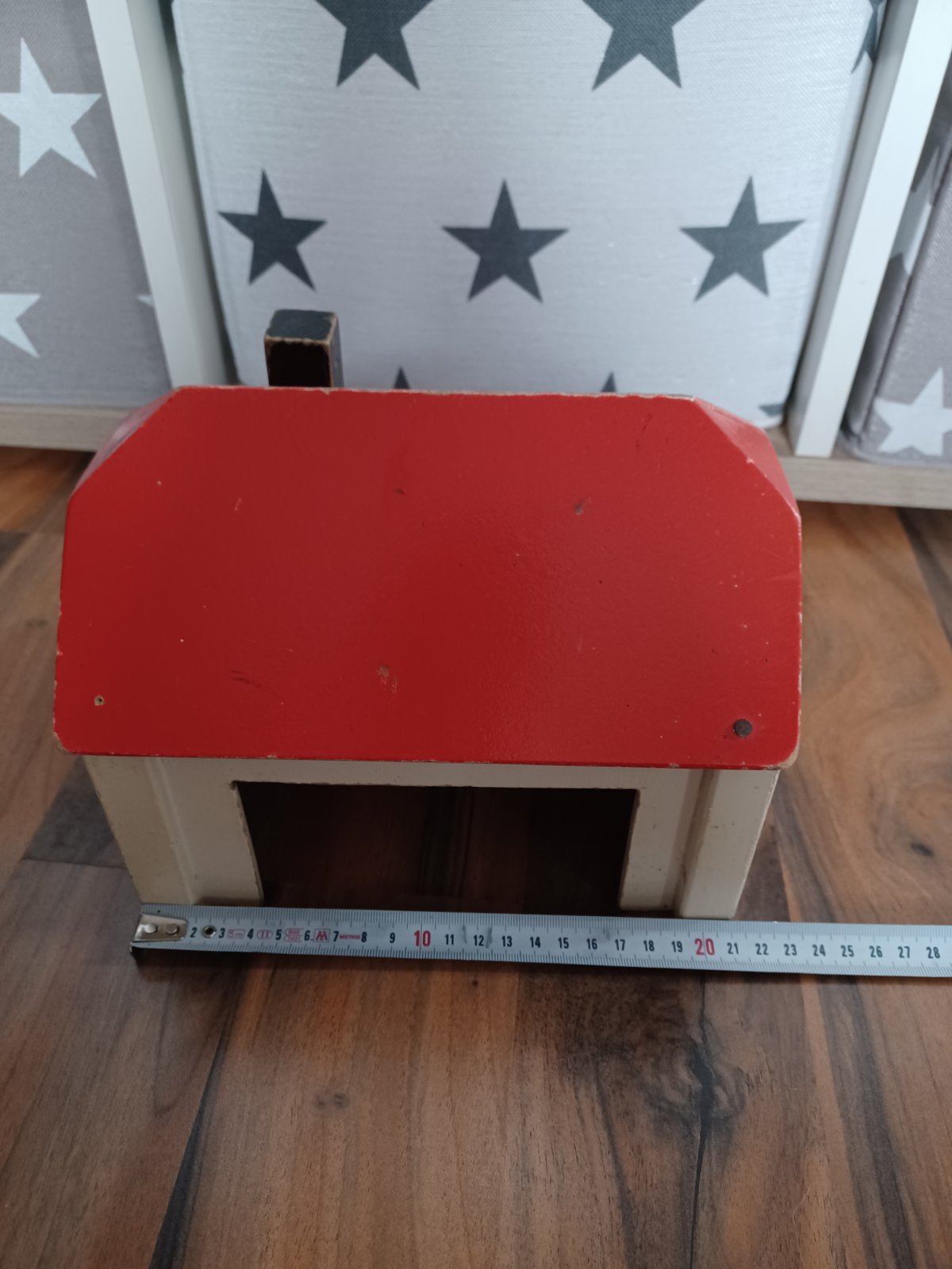 Roztomilý malý retro domeček pro panenky, používaný venku, zachovalý.