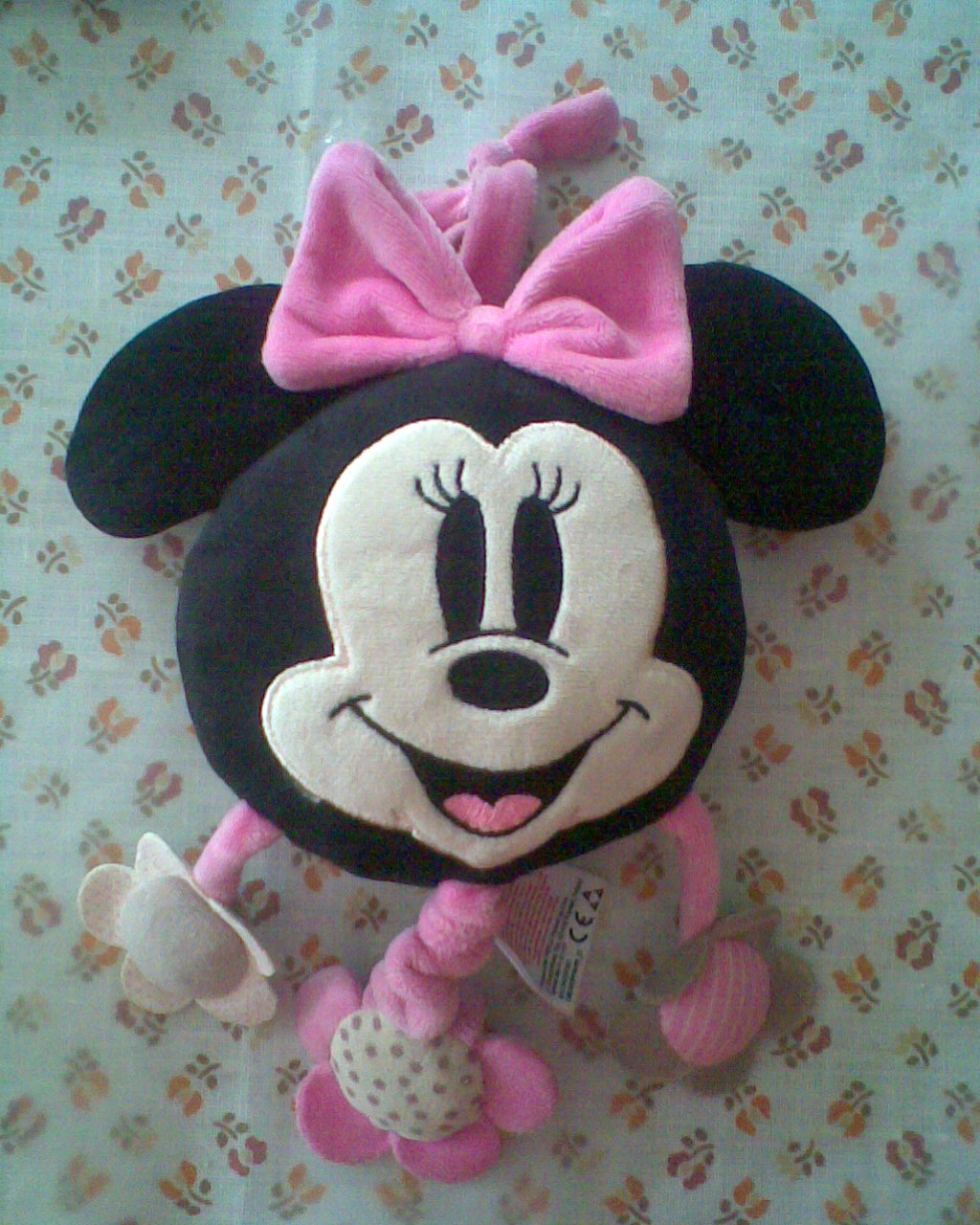 nové různé hračky pro malou holčičku: myška po natažení hraje, zajíček po zmáčknutí hraje několik melodií a svítí sluníčko, uši kousátka, usínáček, plyšáček myška, panenky, metr na záznami jak dítě roste
