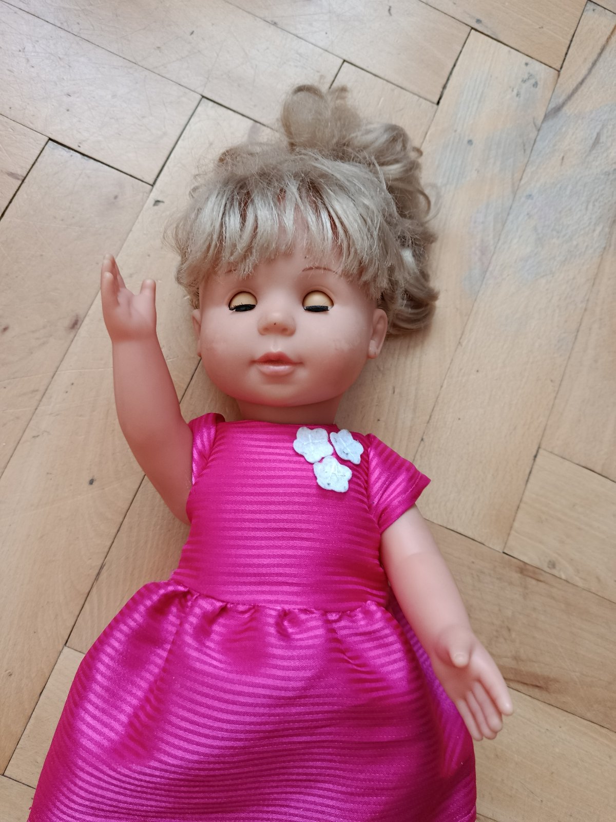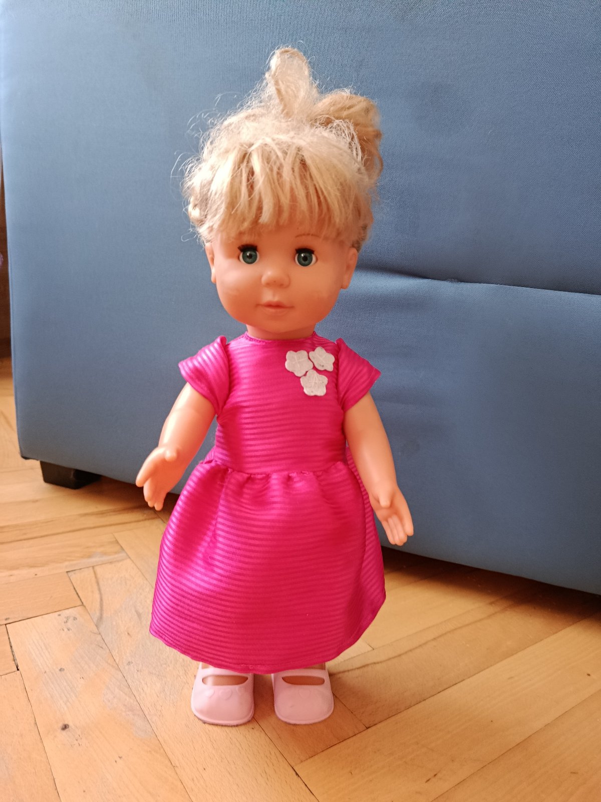 dříve chodila, po "operaci" již jen ťape na místě - noha přišroubovaná a zelepená tavnou pistolí