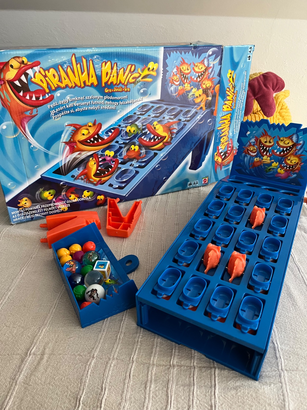 Hrana, chybí 2 kuličky a návod, ničemu nevadí, kuličky se daji doplnit kdyžtak jakékoliv, návod je na netu, 5+, pro 2-4 hráče