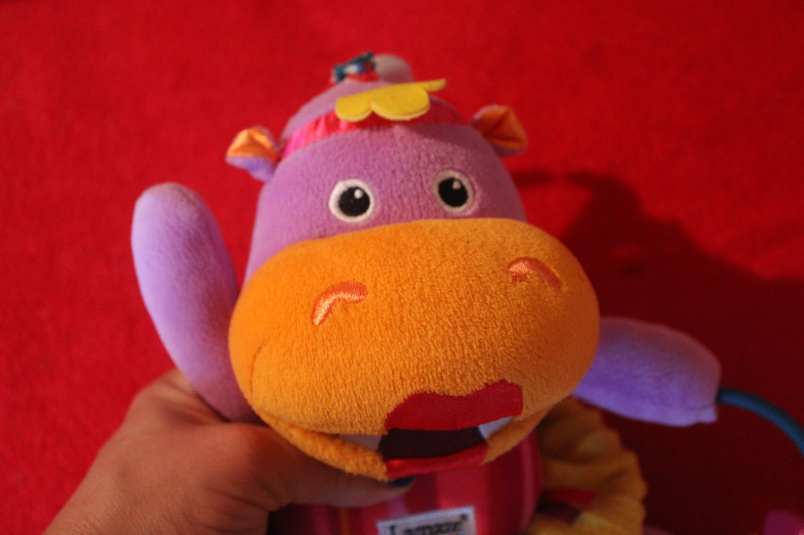 Prodám hrošici v perfektním stavu, značka: Lamaze, délka hrošice je: 31,5 cm, sukýnka chrastí, hrošice chrastí, ještě má plastový pásek spojený ruky a nohy a na něm je plastové srdíčko a hvězdička, které jezdí nahoru a dolu a také chrastí. LAMAZE Hrošice Lulu je sladěna do pestrých barev, které upoutají pozornost miminka. Cena hrošice je: 160 Kč + poštovné. Krabice č. 31.