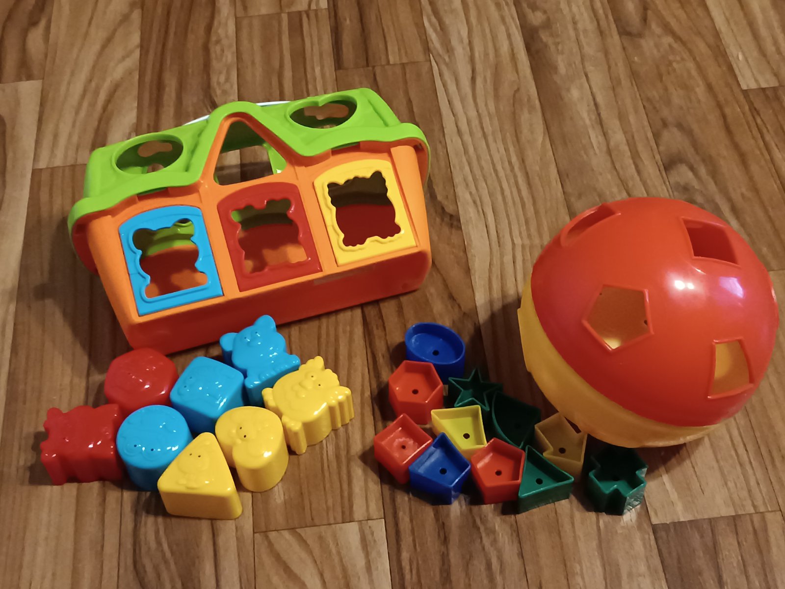 3)Vkládací tvary do zeměkoule, hrané, stále pěkné, celkem lze vkládat 12 tvarů, 2 tvary chybí - 40 Kč.