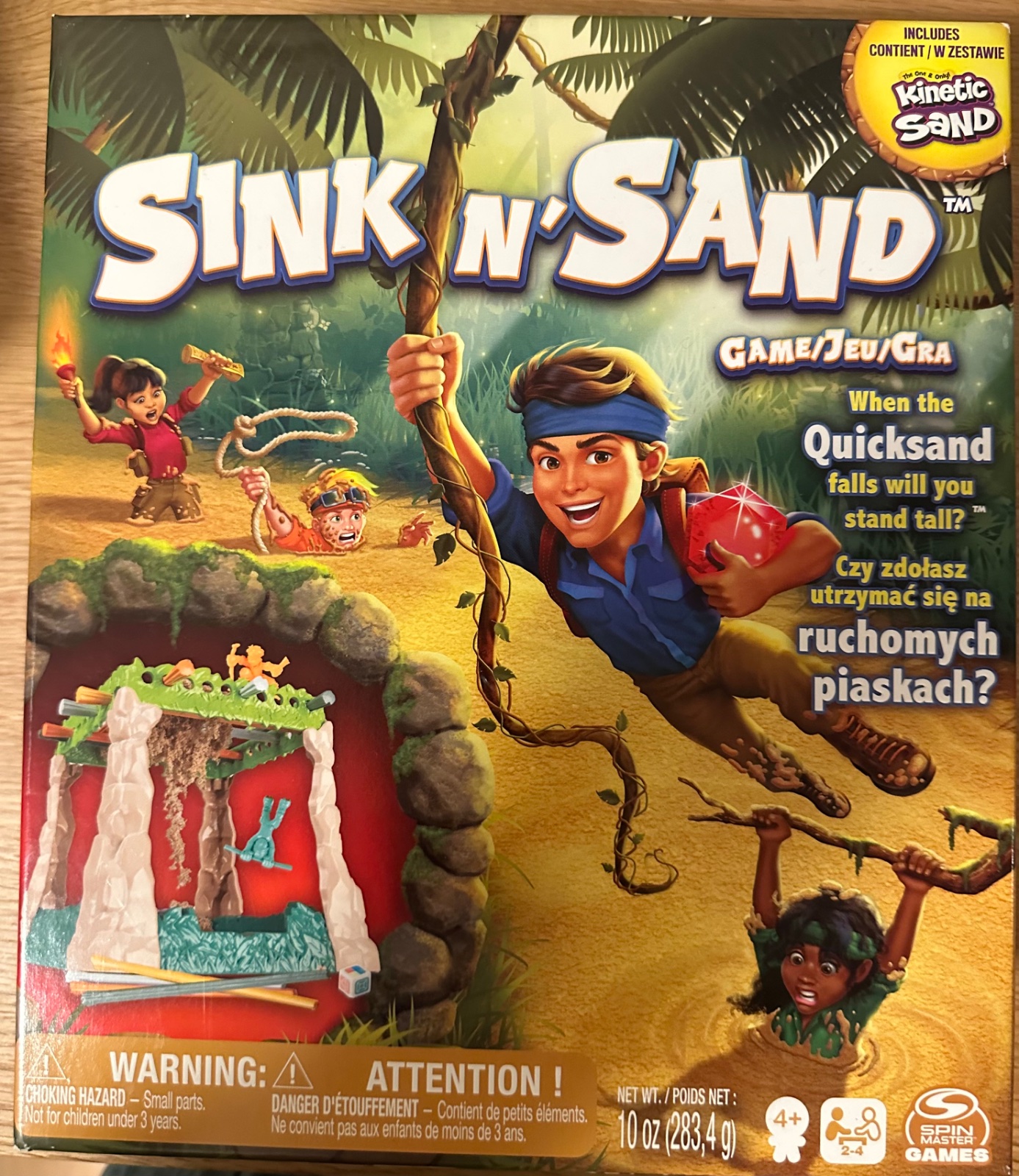 Nápaditá rodinná hra v jedinečné kombinaci s Kinetickým pískem. Hoď kostkou, vytáhni tyčku z roštu a staň se vítězem jako jediný, kdo nepropadl tekutým pískem do nitra džungle. Objevíš Rubín vykoupení, aby sis zachránil život? Pro 2–4 hráče ve věku od 4 let. Obsahuje 1 džungli (1 vršek, 1 základna, 4 nohy), 20 tyček, 1 formovací tác, 4 postavičky, 1 sáček kinetického písku, 1 výkupní rubín, 1 kostku, 1 list s pokyny.
