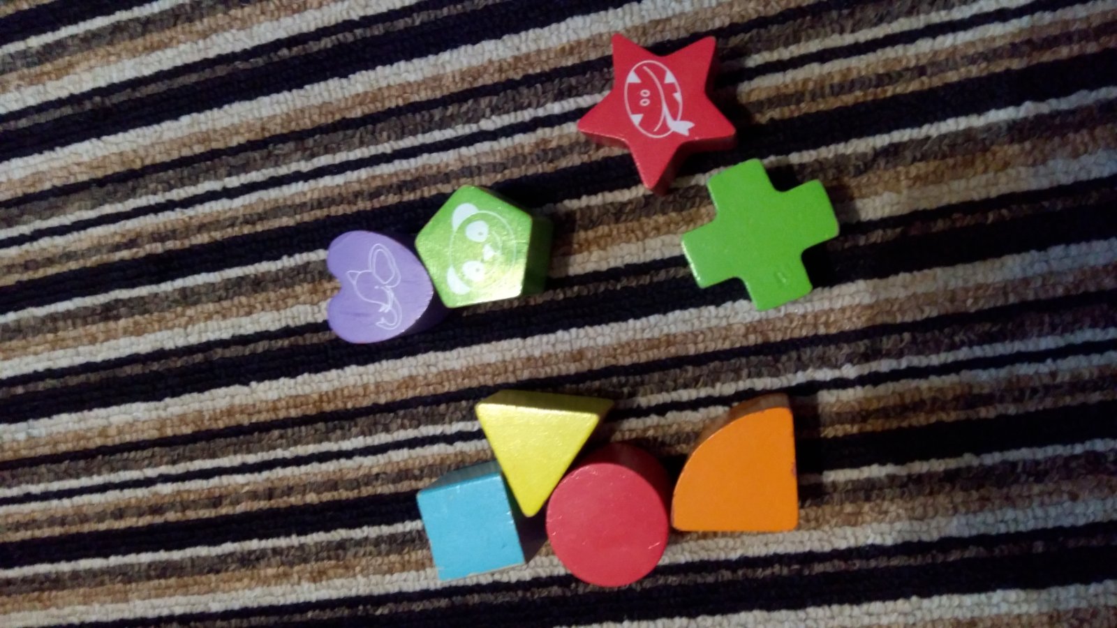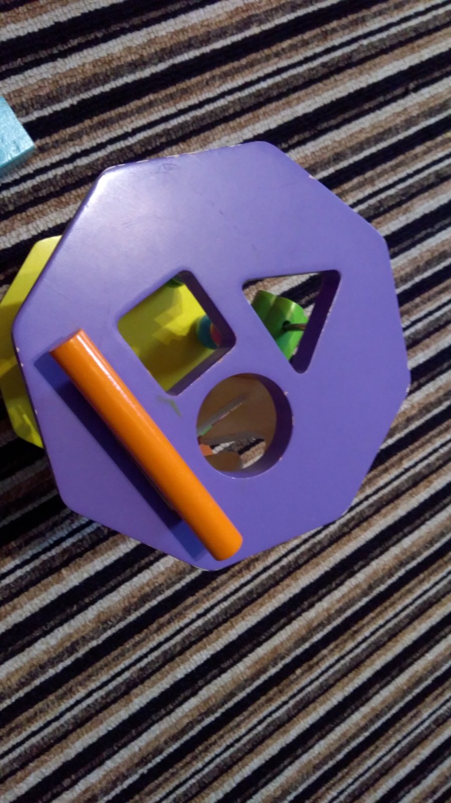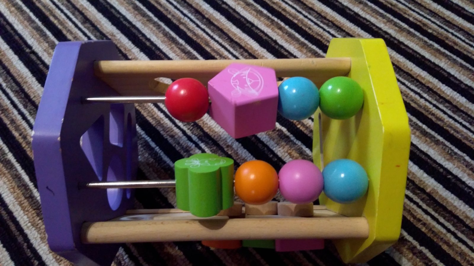 Moc hezká a barevná vkládačka, díky více prvkům rozvíjí motoriku, na spodní straně je zrcátko, horní hrana je místy odřená - viz. foto