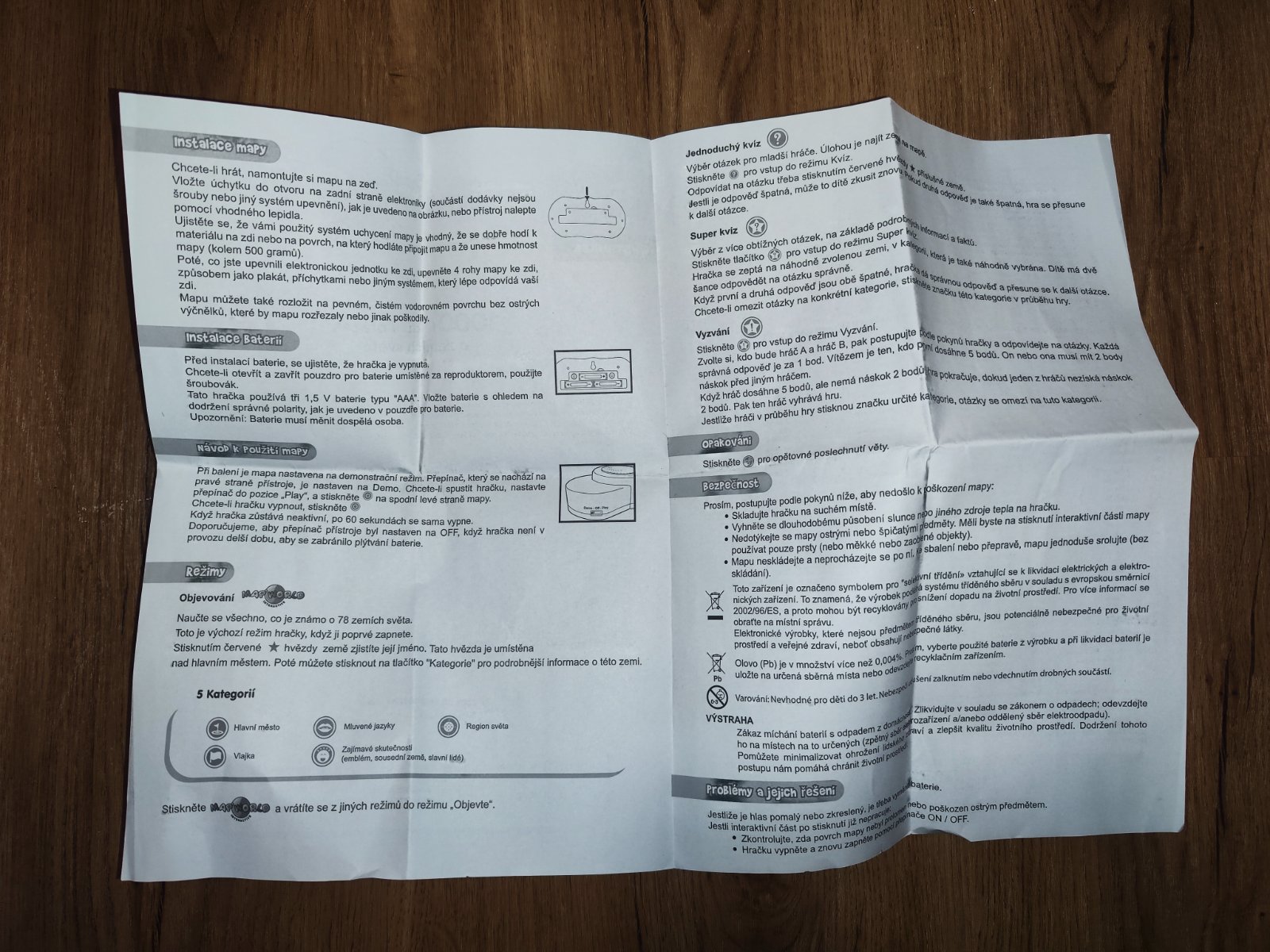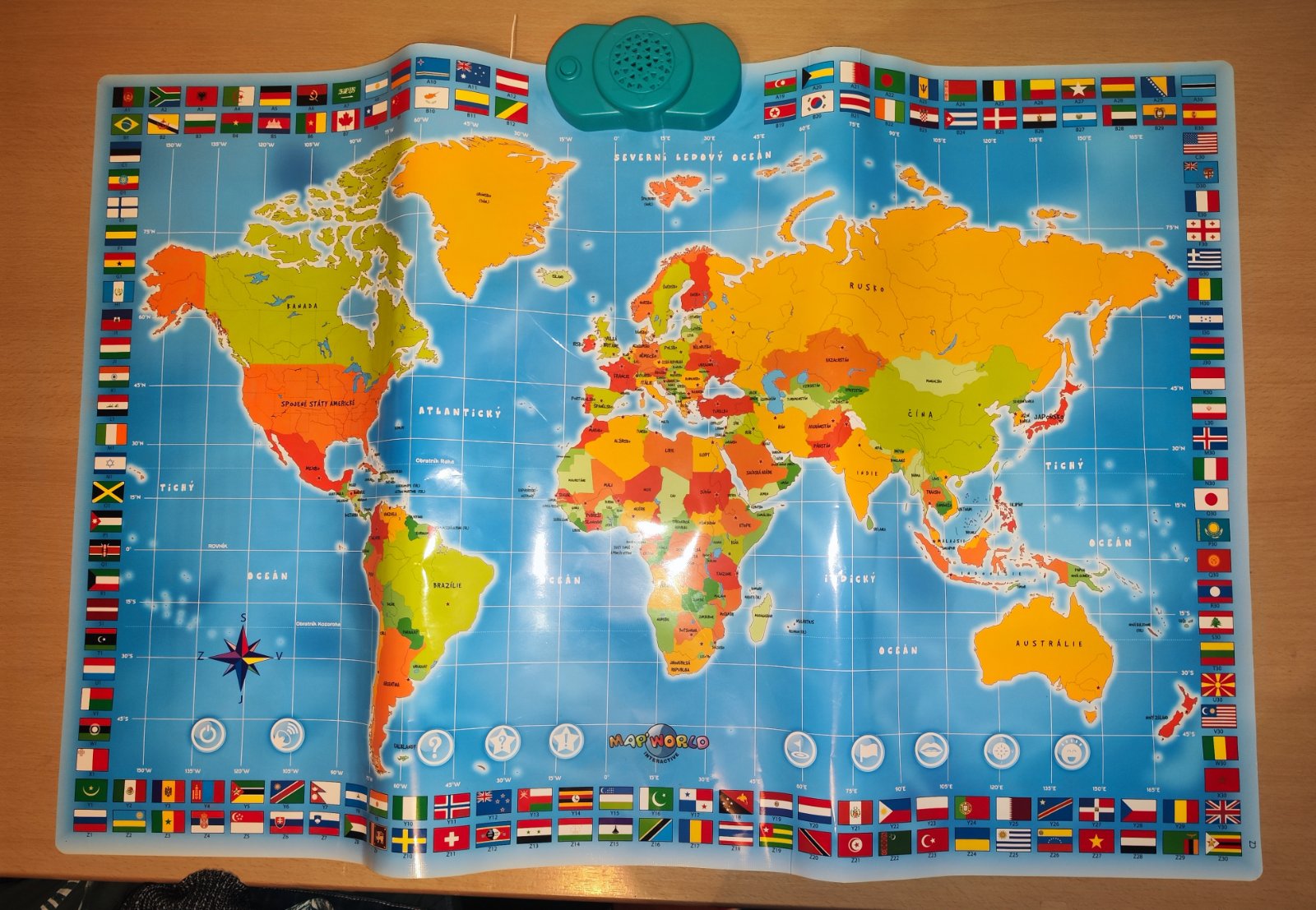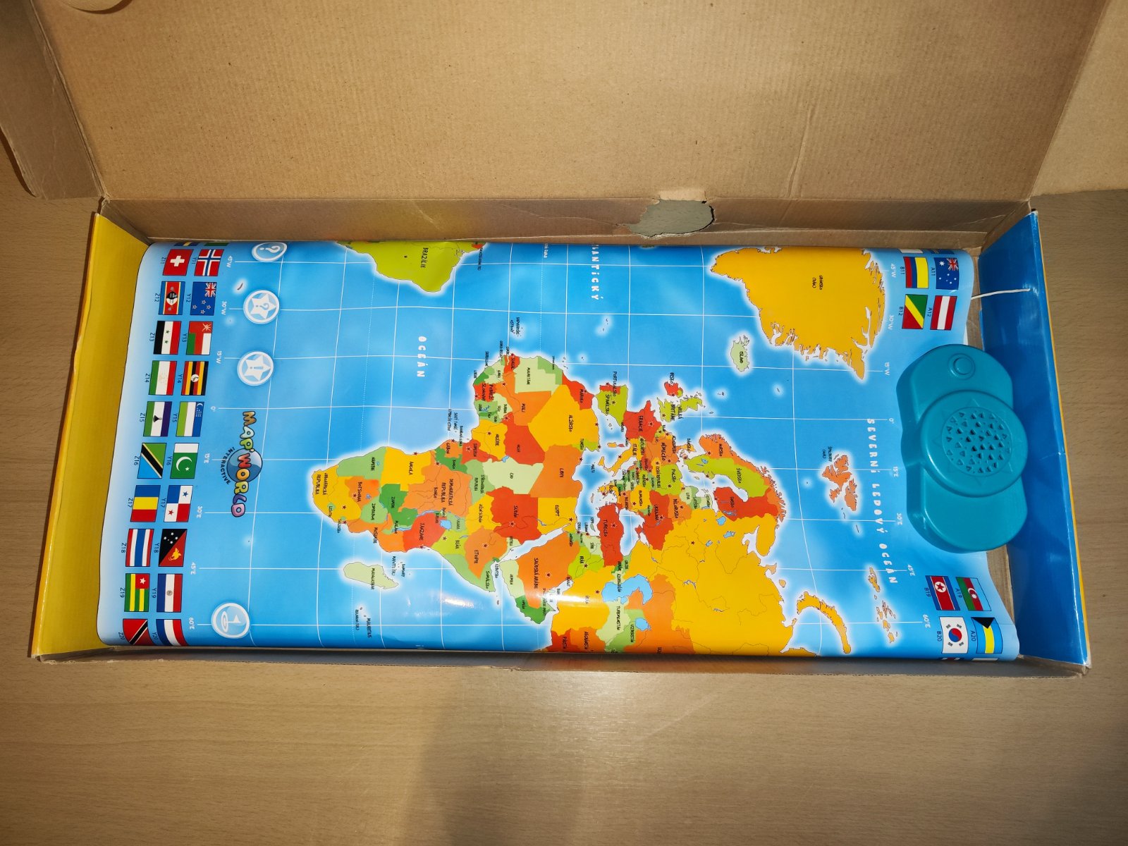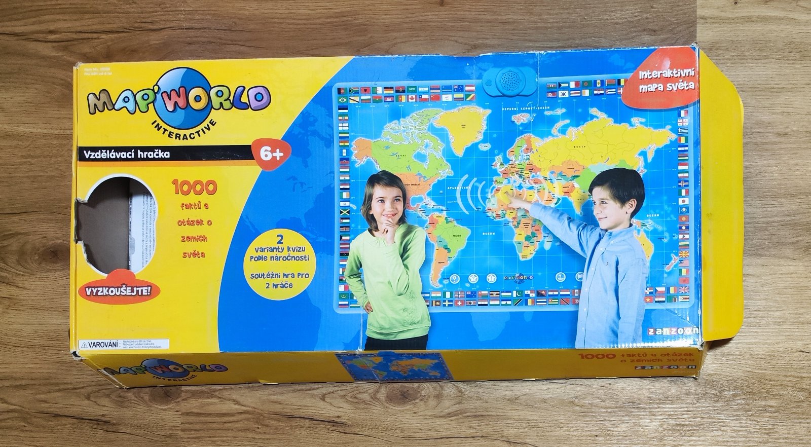 Nabízím k prodeji skvělou vzdělávací hračku pro děti od 6 let – interaktivní mapu světa, která hravou formou učí geografii. Mapa je v perfektním stavu, plně funkční a připravená k okamžitému používání – jsou v ní nové baterie (tři 1, 5 V baterie AAA). 1000 faktů a otázek: Děti se dozví vše o hlavních městech, vlajkách, jazycích a zajímavostech ze 78 zemí světa. Interaktivní zábava: Děti se mapy dotýkají a ona „odpovídá“ – skvělé pro zapamatování. Herní režimy: Obsahuje různé kvízy a soutěžní hru pro 2 hráče. K mapě mám i návod. Cena 500 Kč, v Brně možné osobní předání.