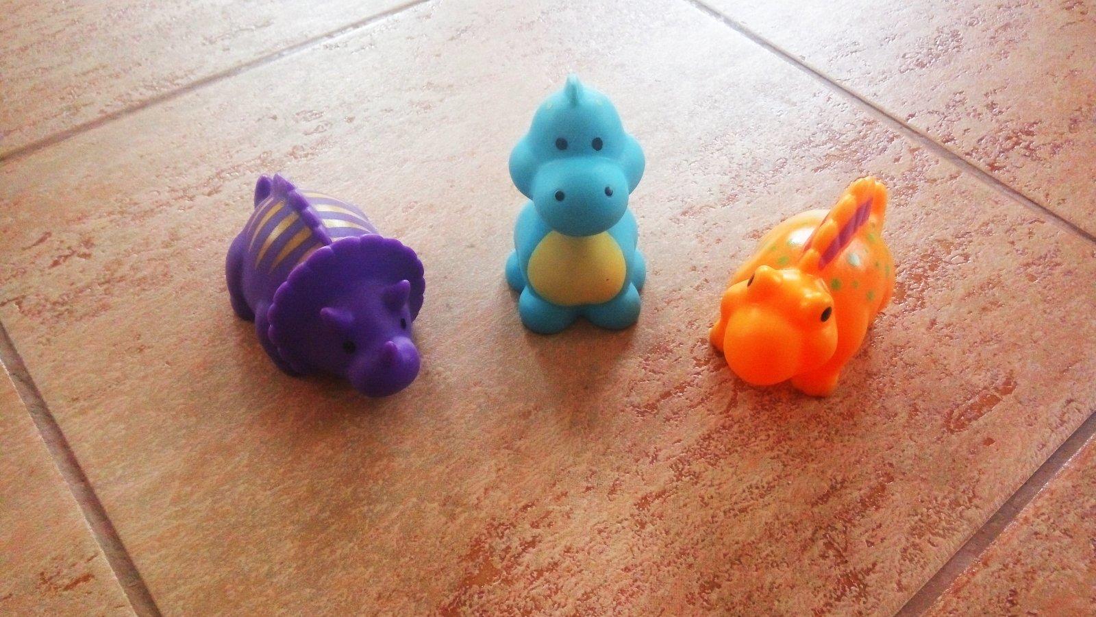 Pěkná gumová barevná zvířátka v podobě dinosaurů od zn. Canpol babies. Top stav. V případě dotazů mě prosím kontaktujte. Cena je za všechny tři kusy.