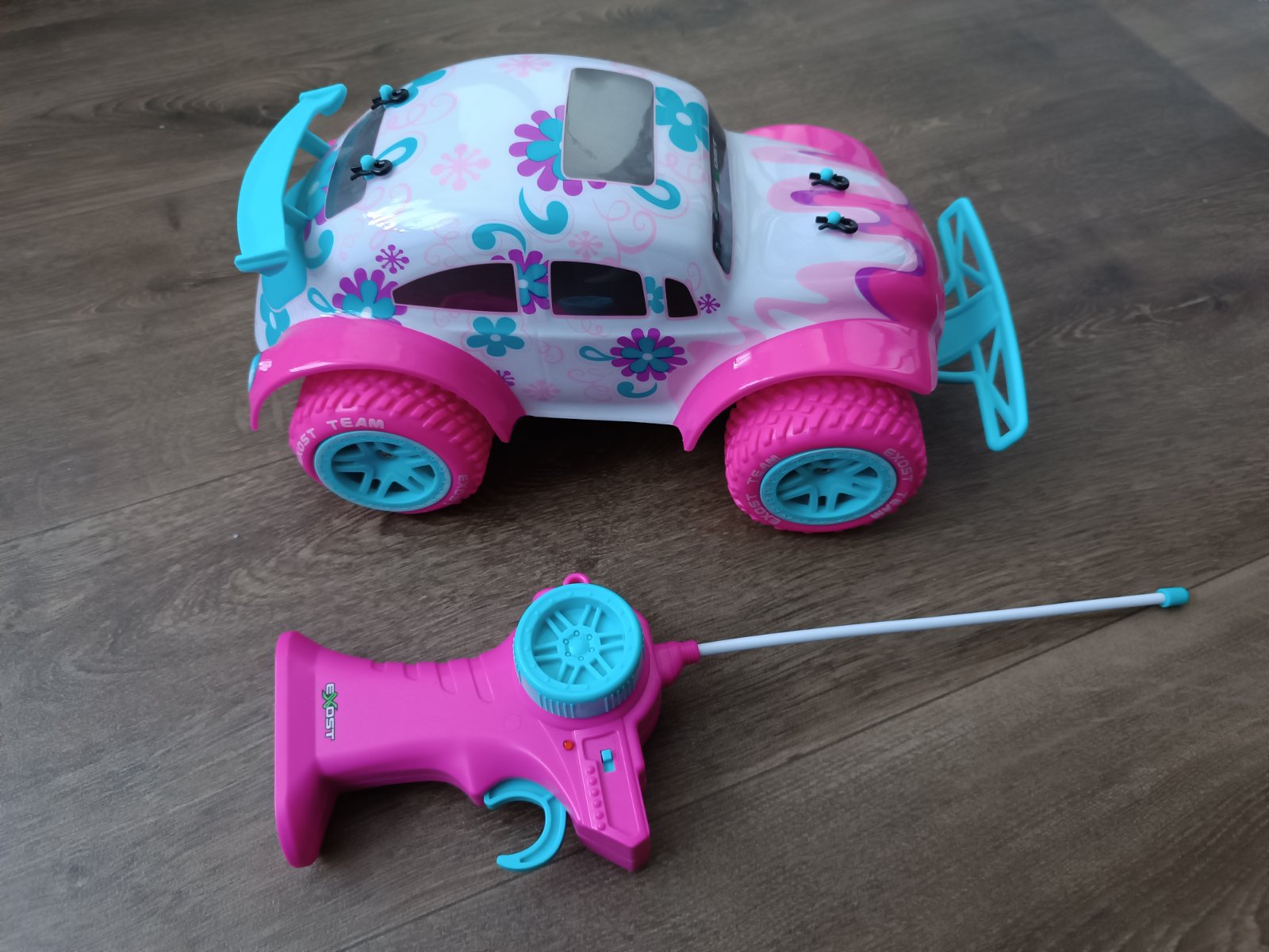 Prodám růžové autíčko na dálkové ovládání Exost Pixie Amazone. Dcera si ho přála k narozeninám, kupováno v Dračikovi, PC: 1050 Kč, ježděno asi týden. V pořádku, jako nové. Na klasické tužkové baterie.