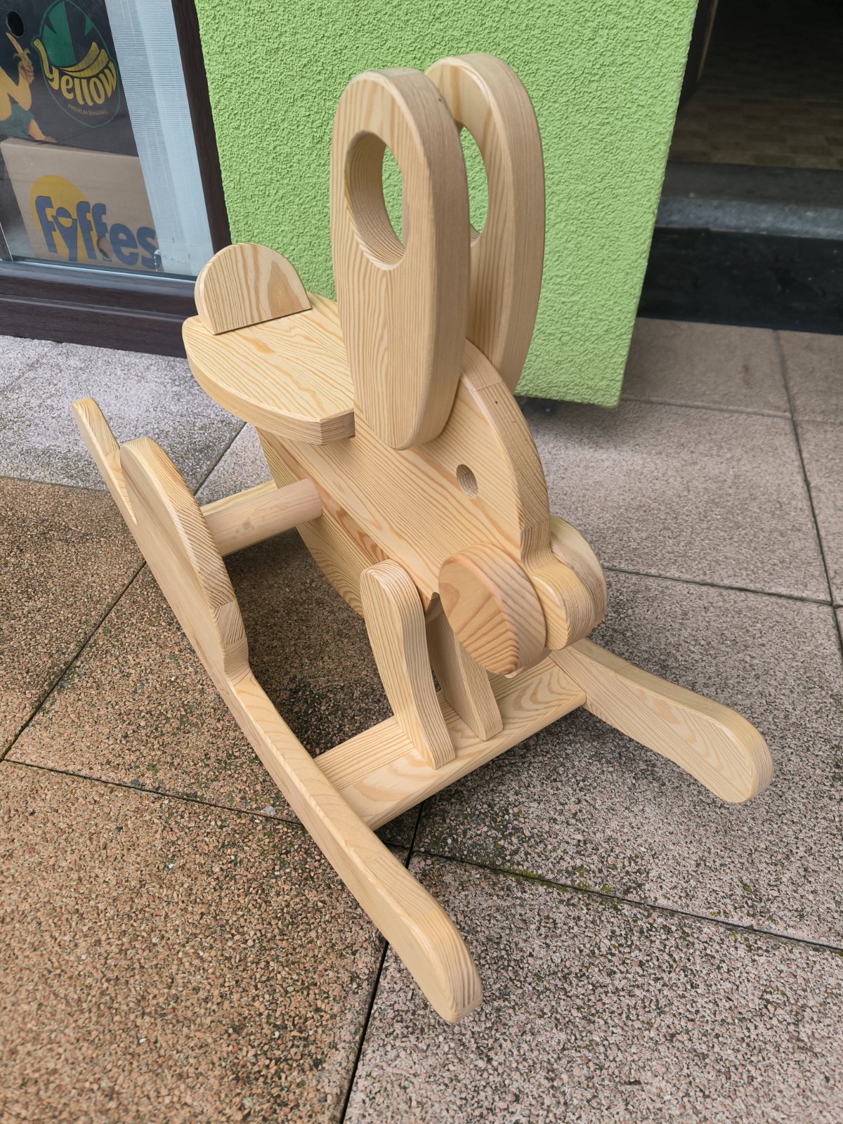 Nepoužitý houpací dřevěný masivní zajíc. PC 2000 (79,90€)