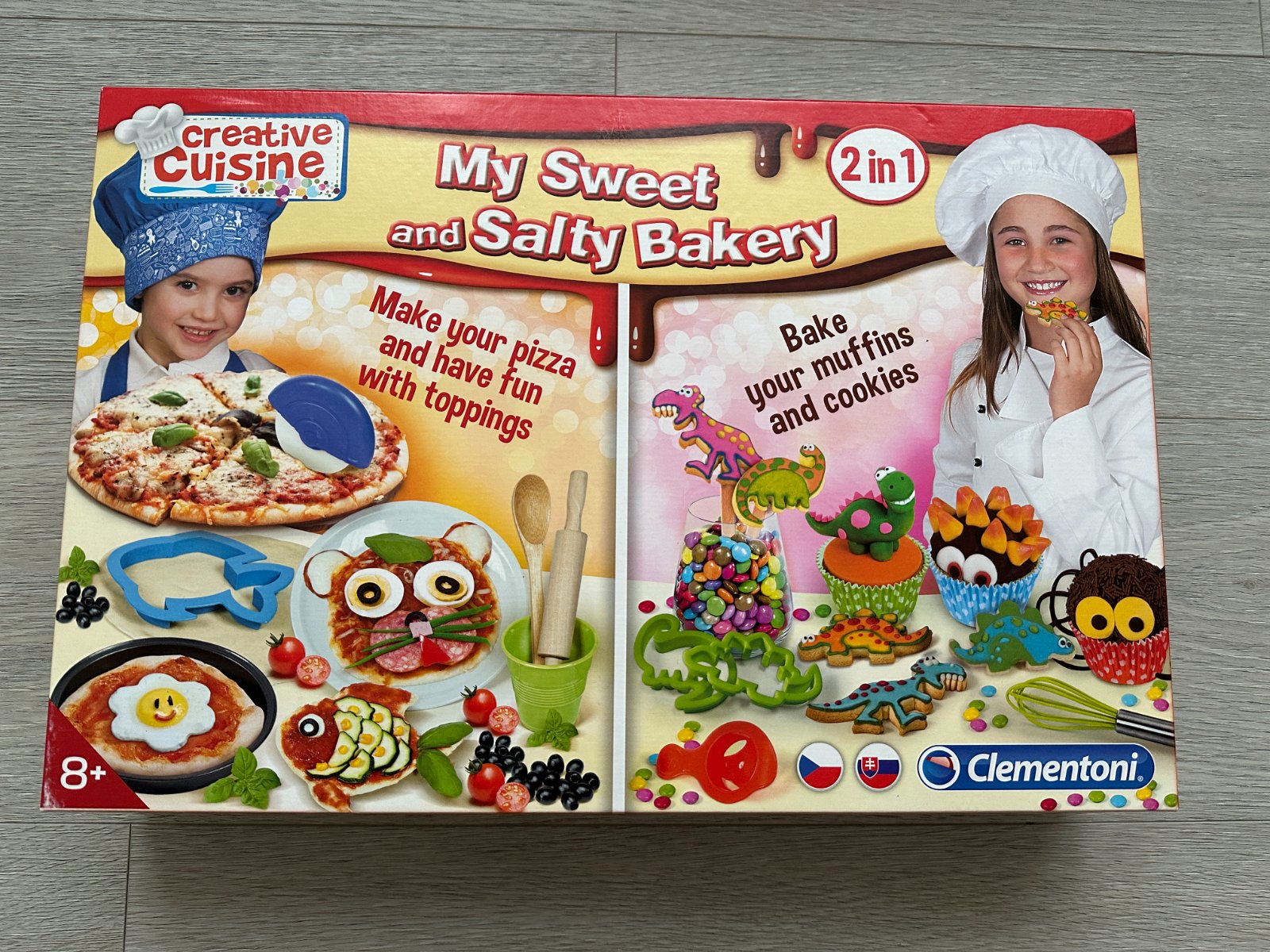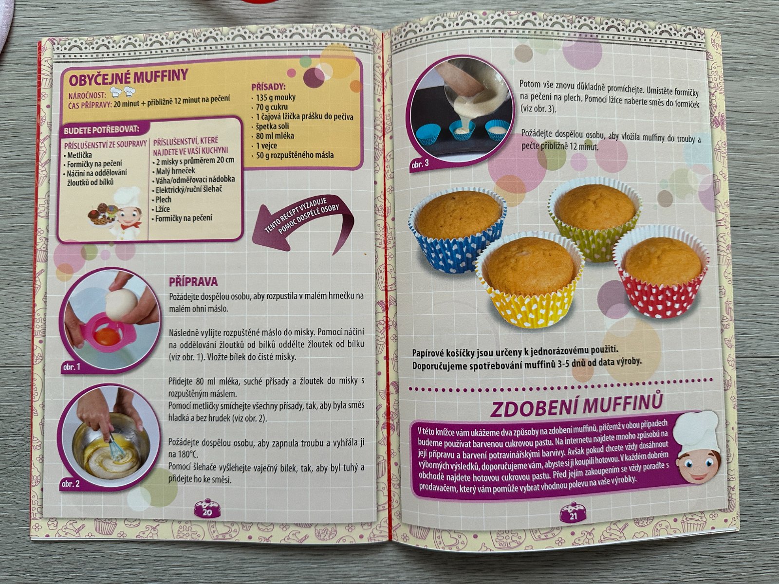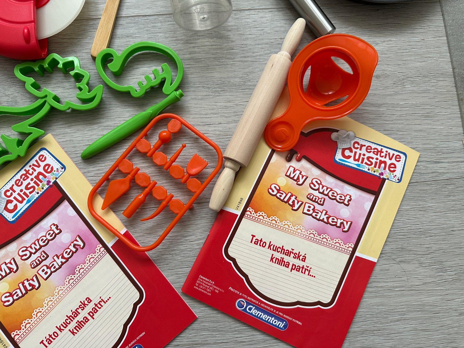 - obsahuje: formičky na pizzu, odměrku, zástěru, kuchařskou čepici, rukavici, váleček, vařečku, plech, kolečko na krájení pizzy a kuchařku