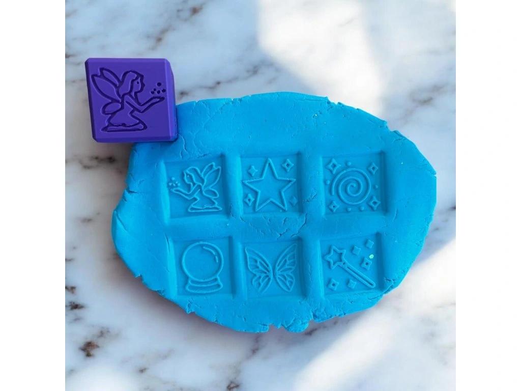 Otiskávací kostka je vhodná jako doplněk k plastelíně, kinetickému písku a k podobným hmotám.