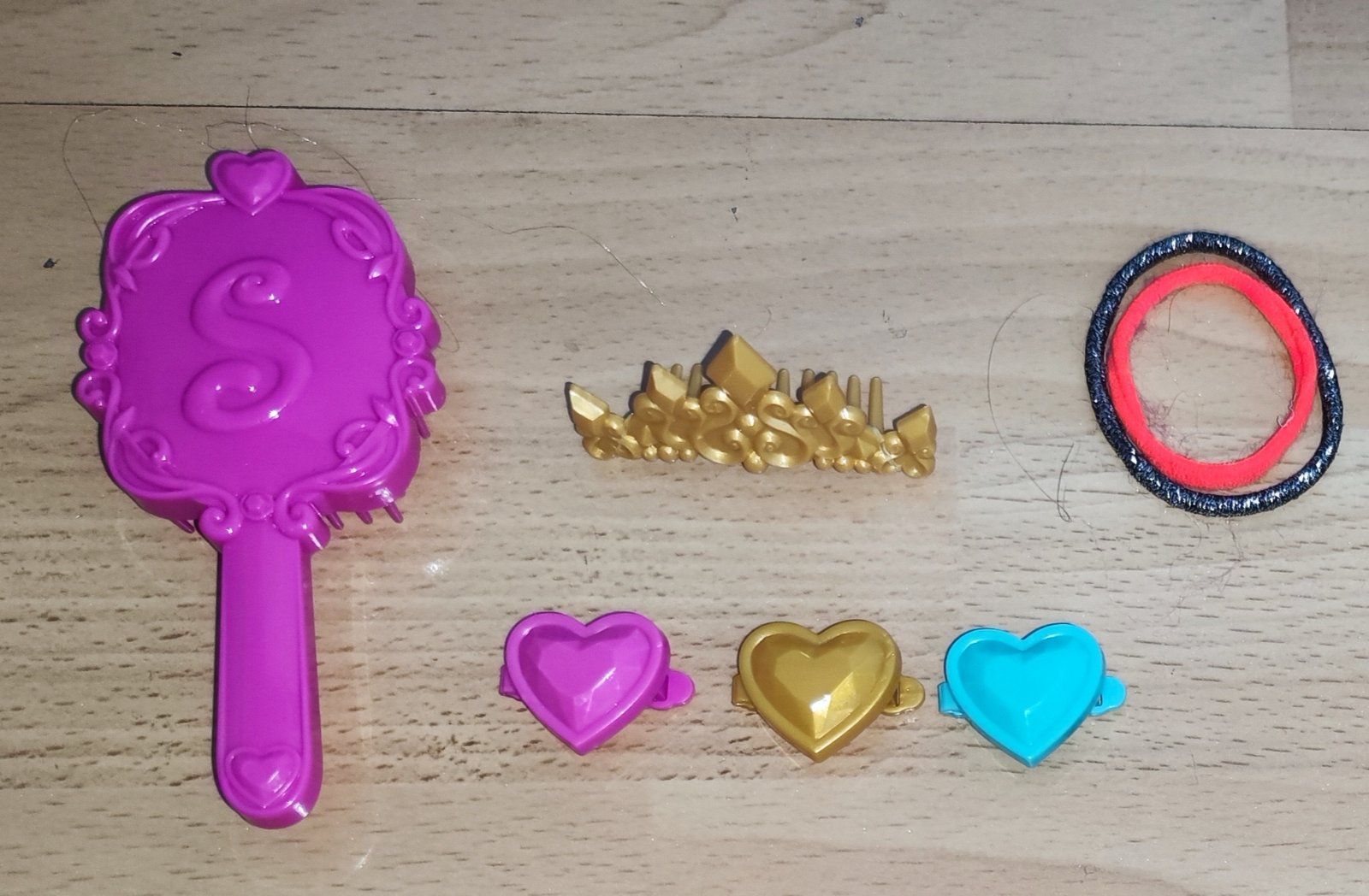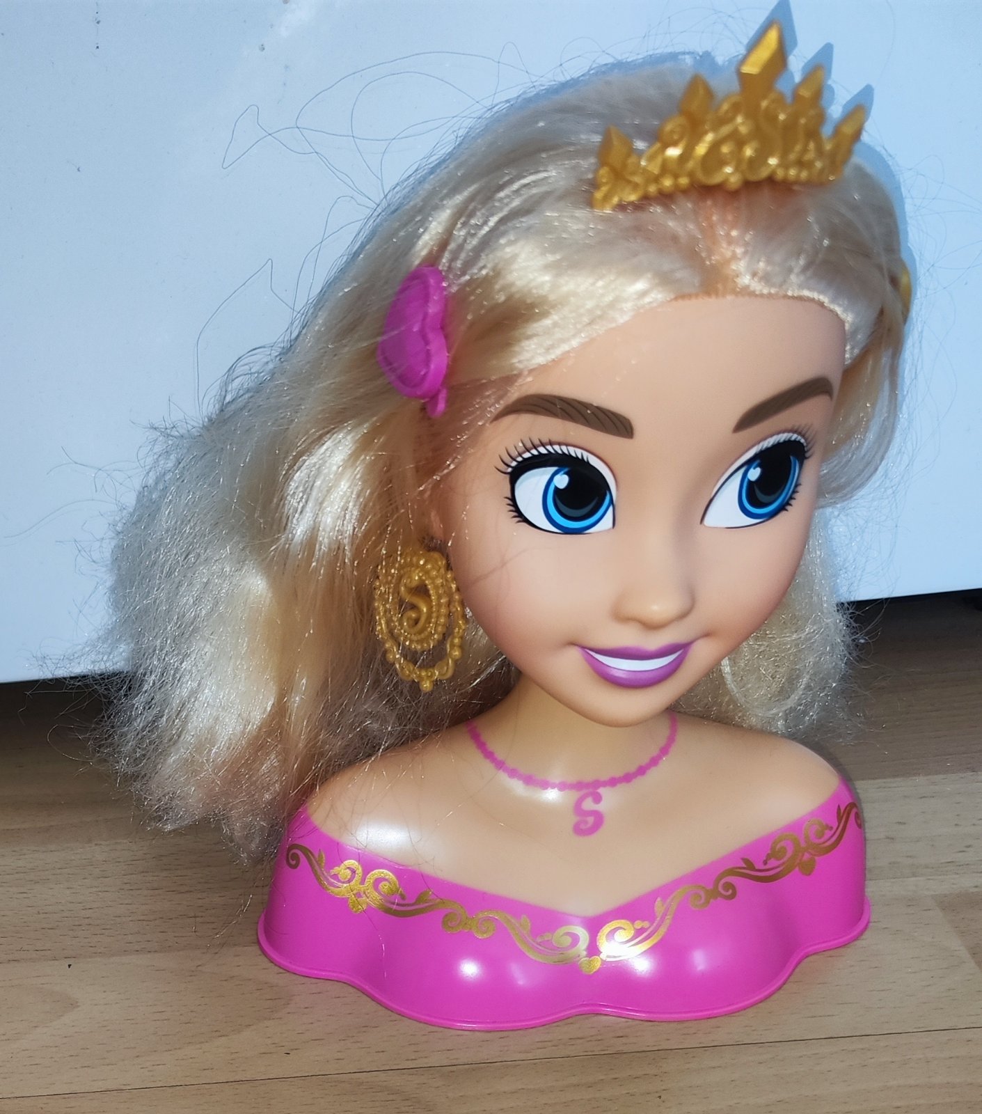 Sparkle Girlz hledá novou majitelku! Malá hlava, velké nápady! Tato česací hlava je vysoká cca 22 cm, má blond vlasy, milý výraz, velké modré oči, růžový outfit s náhrdelníkem, náušnice. K tomu patří i korunka, hřebínek, 3 sponky a 2 gumičky. Dále k tomu dám kreativní sadu k tvoření – barevné prameny (fialová, růžová, oranžová, modrá), umělé květiny a lístky, korálky, kovové přívěsky, zelená listová stuha, různé gumičky, provázky,….. Ideální pro malé kadeřnice, vizážistky i kreativní duše. Cena za vše 260 Kč, v Brně možné osobní předání.
