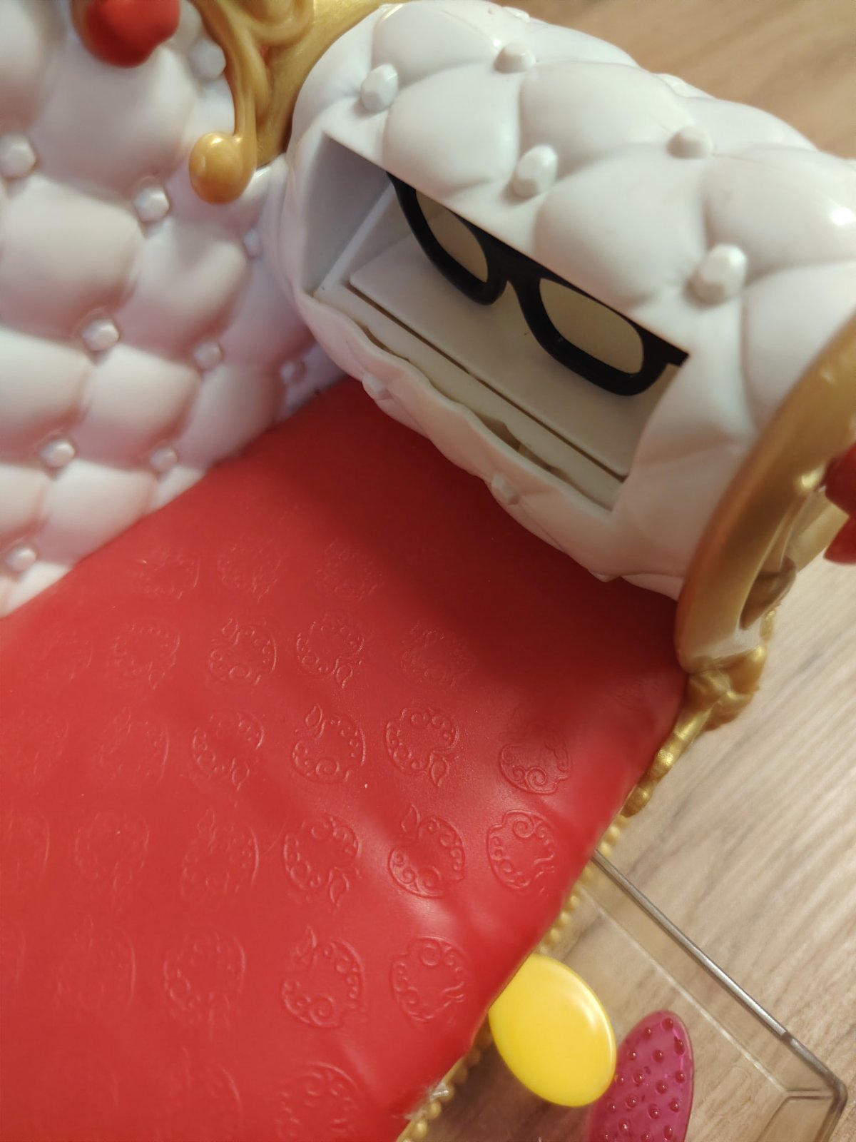Plastový. Nábytek se dá přemisťovat, schody jsou oddělávací.