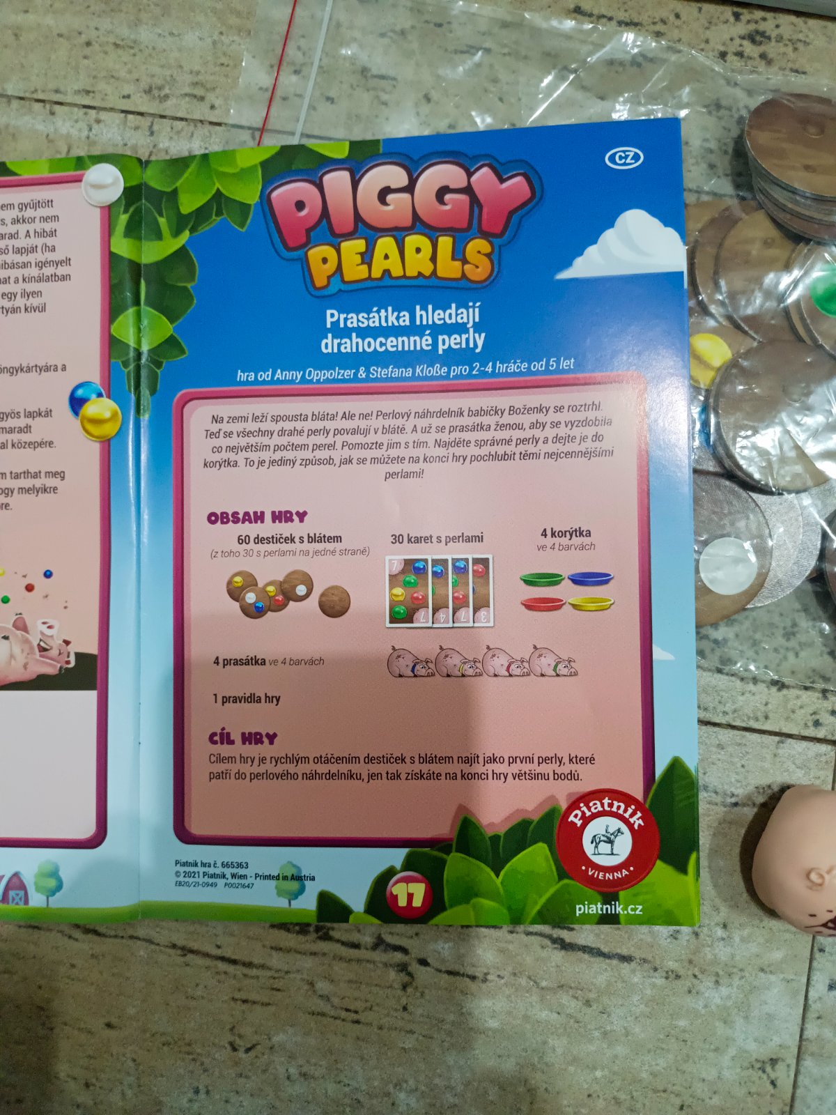 Piggy pearls – zn. Piatnik, málo hraná, pěkná, kompletní, jeden žeton lehce poškozený – viz. foto,