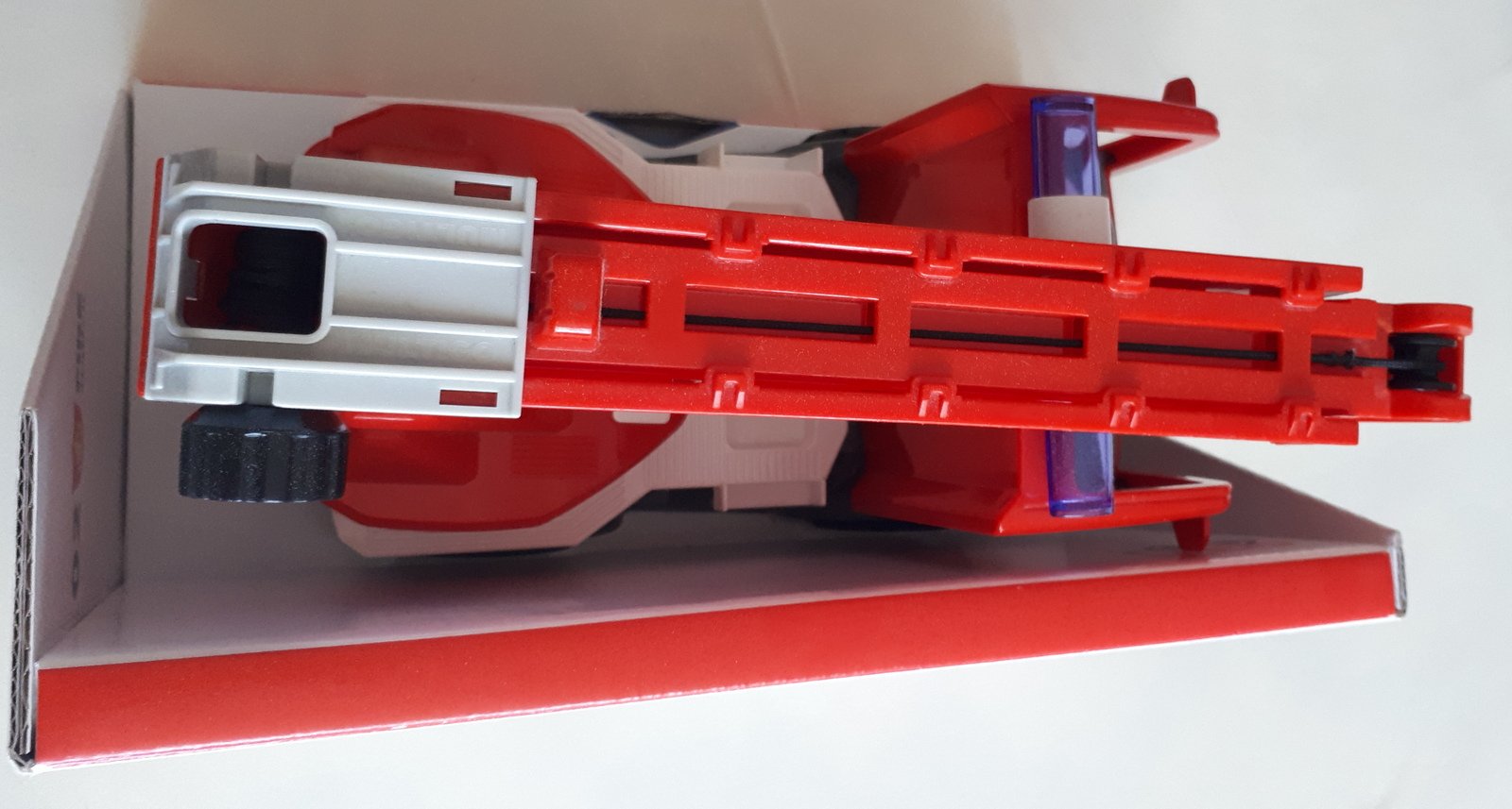 Důležité záchranné vozidlo nejenom na boj s ohněm. Jeřáb je pojízdný, rameno jeřábu se na základně otáčí, lze ho zvedat a vysunout. Hák jeřábu se ovládá navijákem. Balení obsahuje Igráčka hasiče.