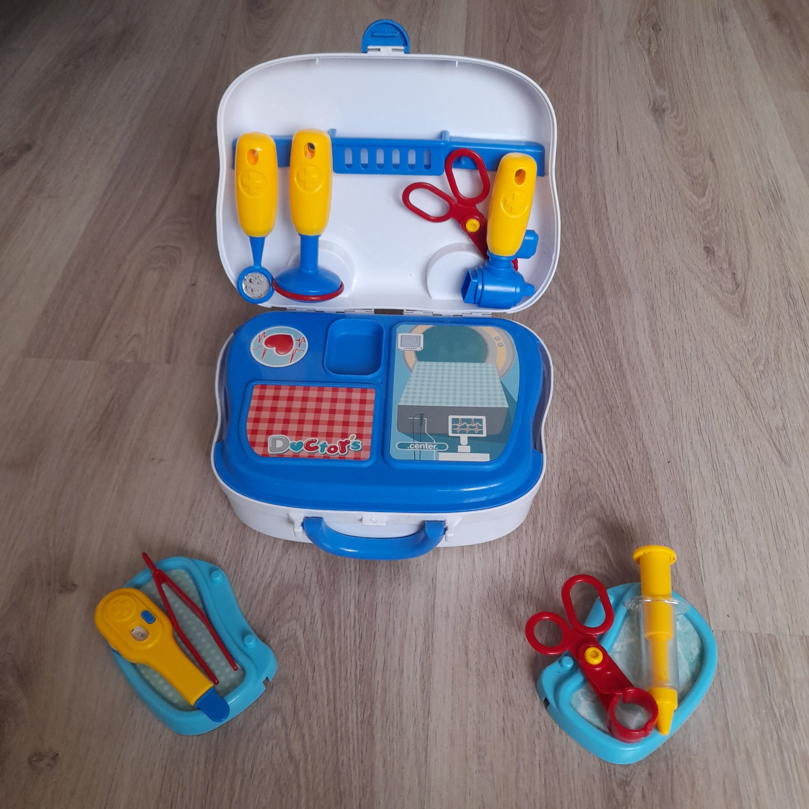 Prodám dětský lékařský kufřík na kolečkách. Sada obsahuje teploměr, injekce, nůžky, pinzetu a další lékařské pomůcky. Po jednom dítěti, super stav. Upřednostňuji osobní odběr v ČB nebo 1x za měsíc Třeboň, JH. Také možno poslat Českou poštou, Balíkovnou nebo Zásilkovnou.