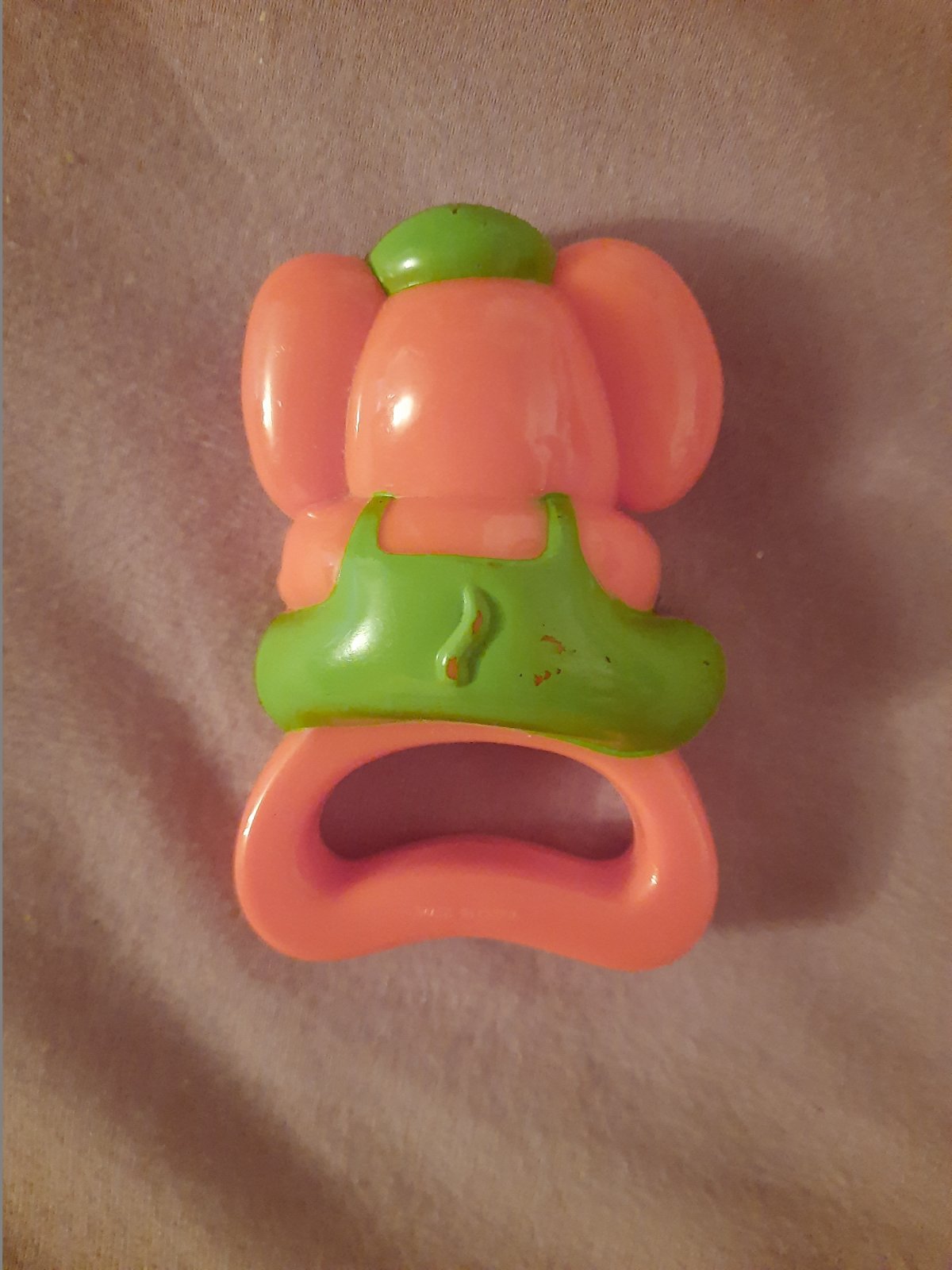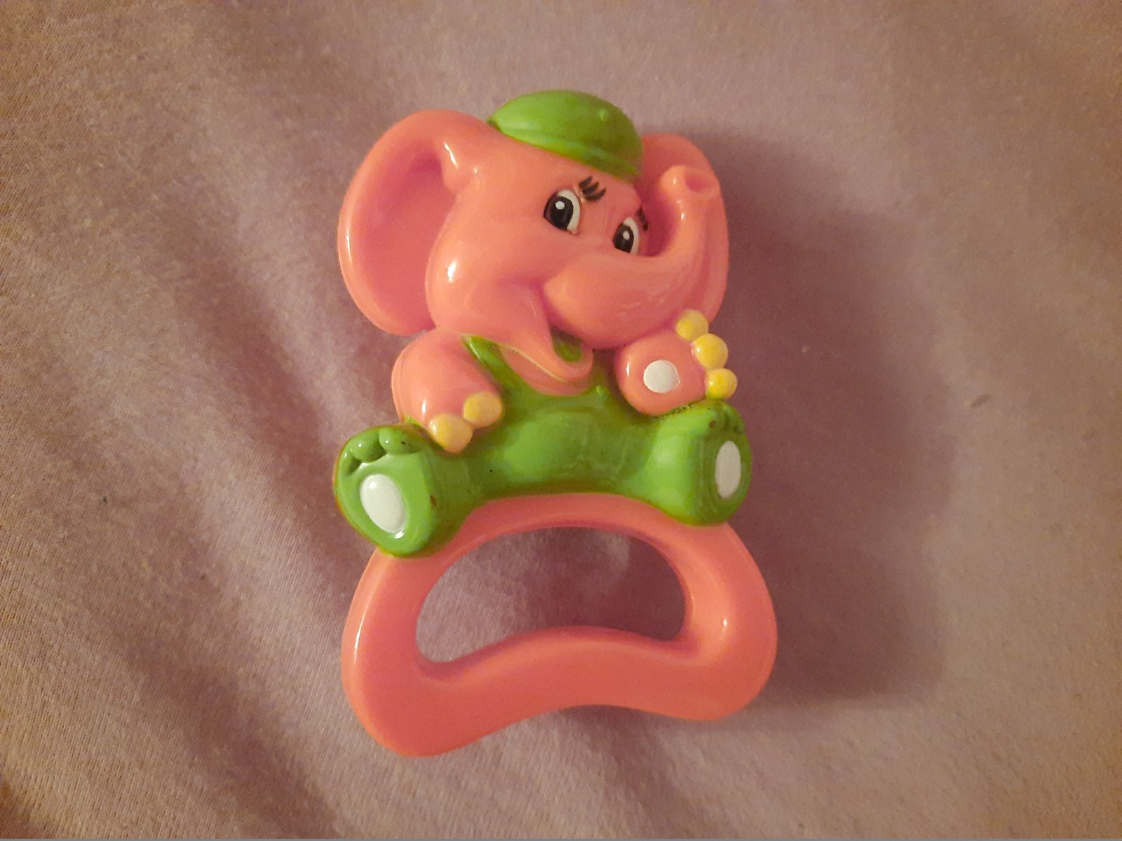 Prodám plně funkční chrastítko, délka sloníka je cca 10 cm, na zadečku lehce chybí trošilinku barvička, cena tomu přizpůsobena. Cena chrastítka je: 39 Kč + poštovné. Krabice č. 19.