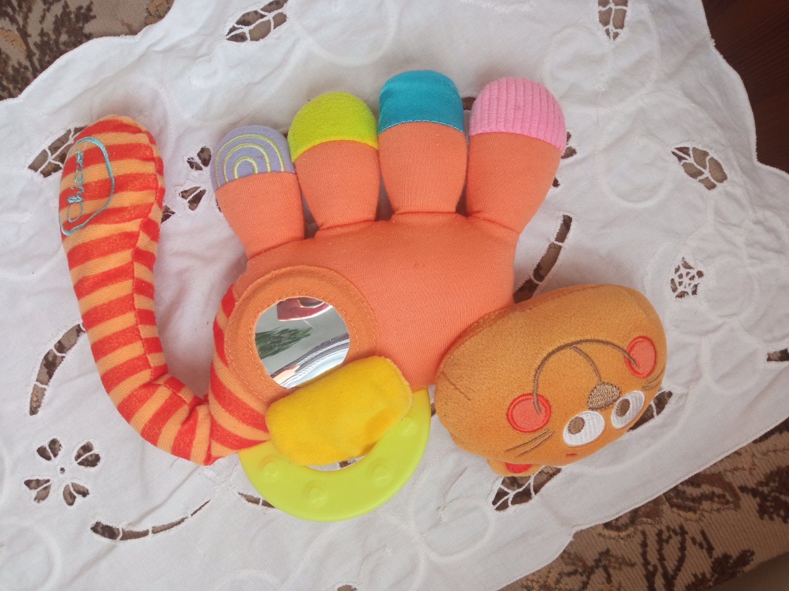 Prodám pěkné chrastítko pro mimi,plyšového kocoura kombinace chrastítka,kousátka i zrcátka,značka Chicco.Cena 50kč.