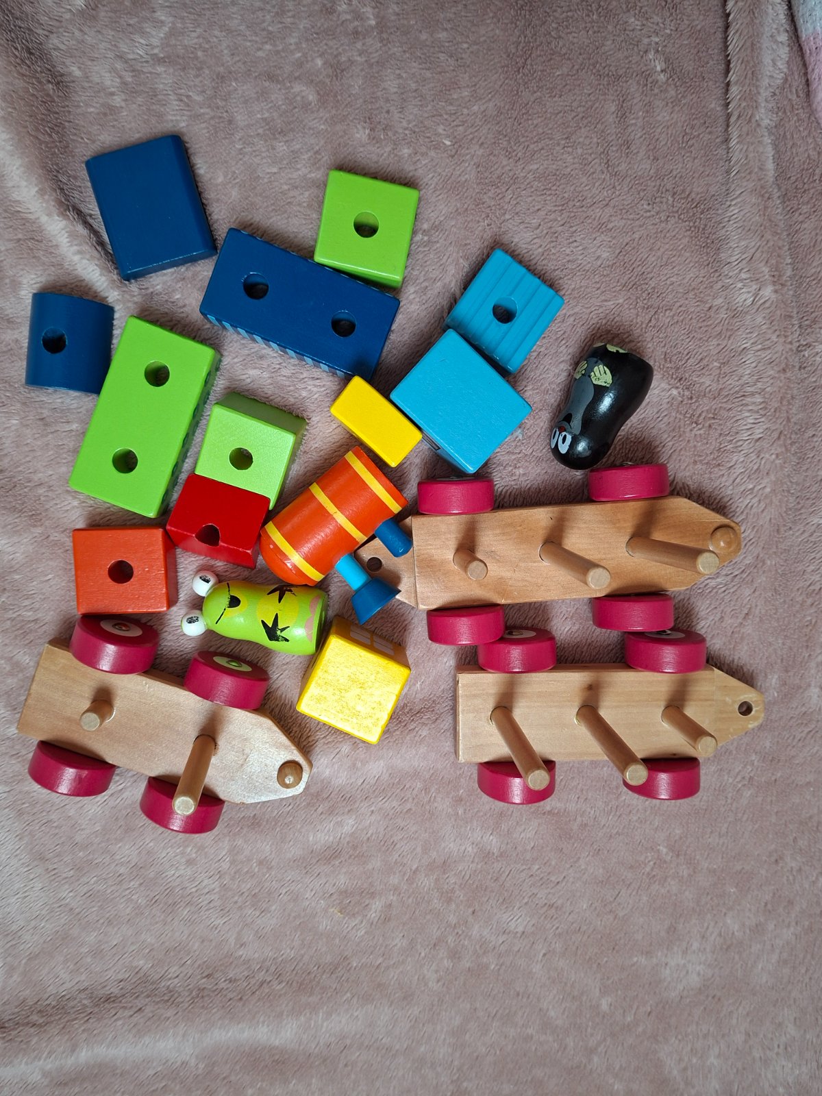 Vláček hraný, ale stále pěkný. Kompletní, nic nechybí. Běžné opotřebení.Hračka rozvíjí motoriku a fantazii dítěte. Délka vláčku je 42 cm. Obsahuje 19 dílků. Vyrobeno v ČR.