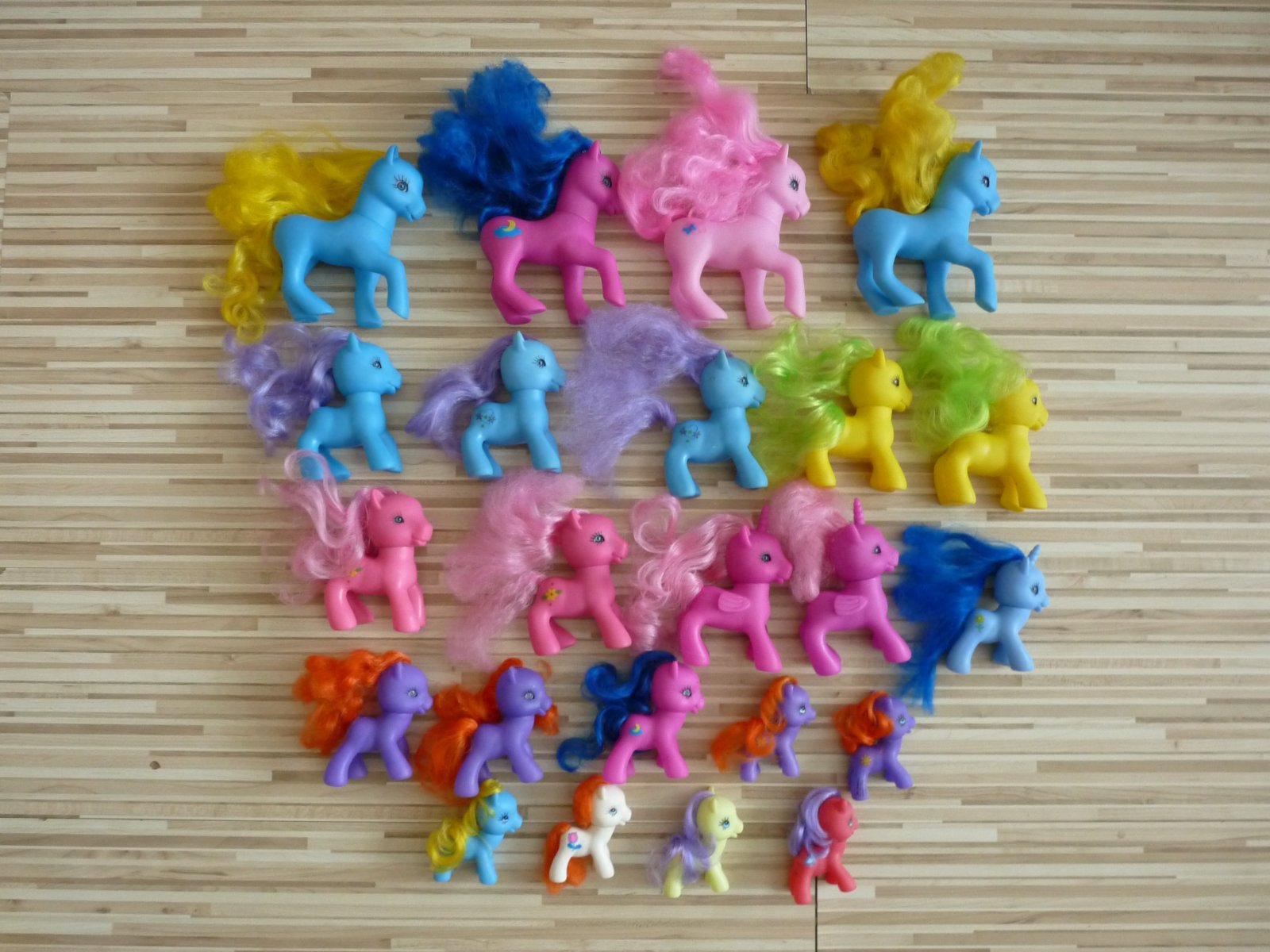 Poníci na hraní 23 ks. Jedná se o neoriginální poníky různých značek. Jsou hraní, takže občas mají nějakou kosmetickou vadu - ošoupanou malbu, chybějící pramínek vlasů, zkrácené vlasy, občas mají někde čmáranec. Jsou ale všichni umytí, učesaní a připravení na další hraní :-)