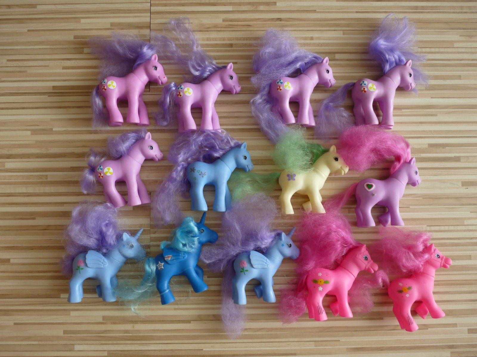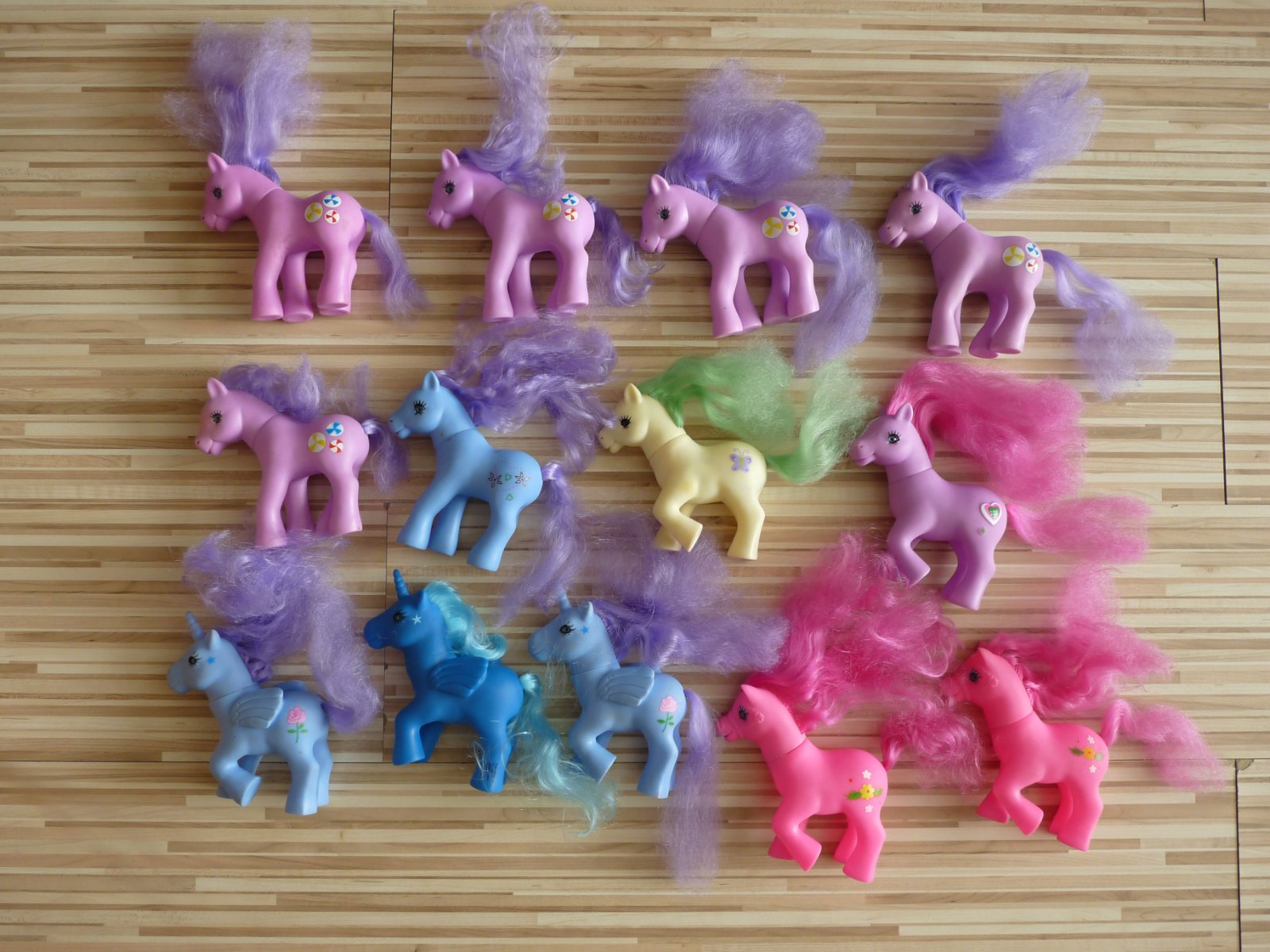 Poníci na hraní 14 ks. Jedná se o neoriginální poníky různých značek. Jsou hraní, takže občas mají nějakou kosmetickou vadu - ošoupanou malbu, chybějící pramínek vlasů, zkrácené vlasy, občas mají někde čmáranec. Jsou ale všichni umytí, učesaní a připravení na další hraní :-)