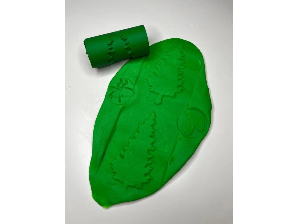 Otiskávací váleček je vhodný jako doplněk k plastelíně, kinetickému písku a k podobným hmotám.