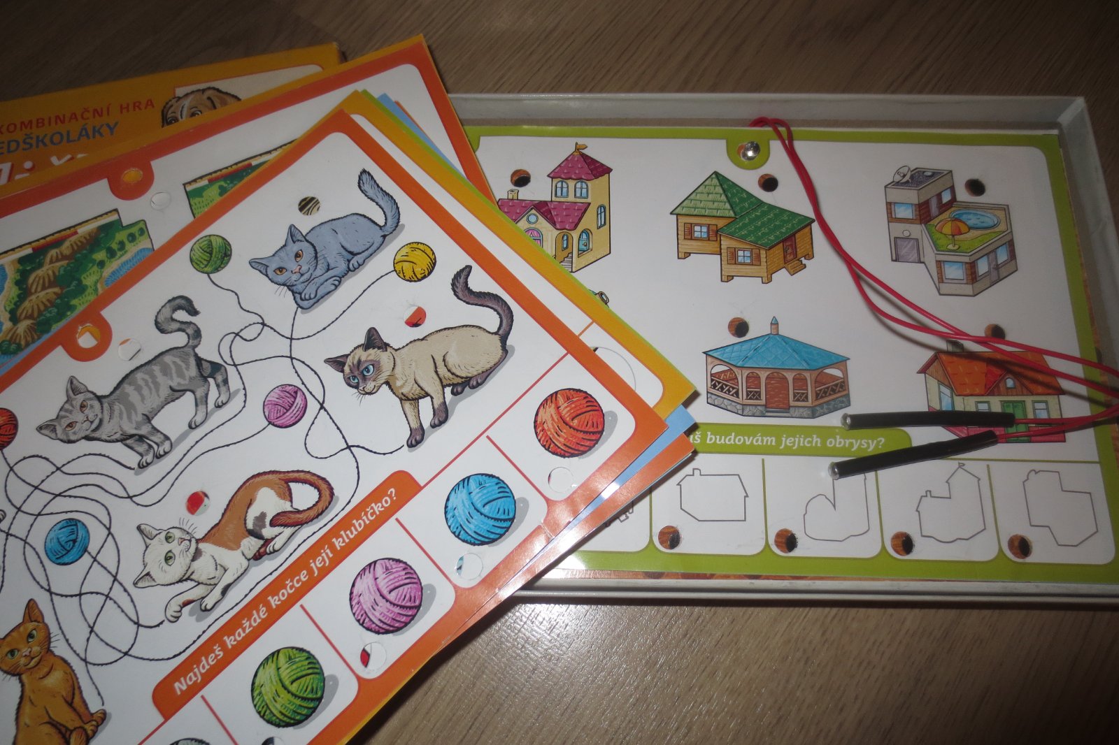 Elektrické kombinační hry pro děti od 4 let. Každá hra obsahuje 16 listů, mezi nimiž děti hledají souvislosti. Správnou odpověď signalizuje zelené světélko.