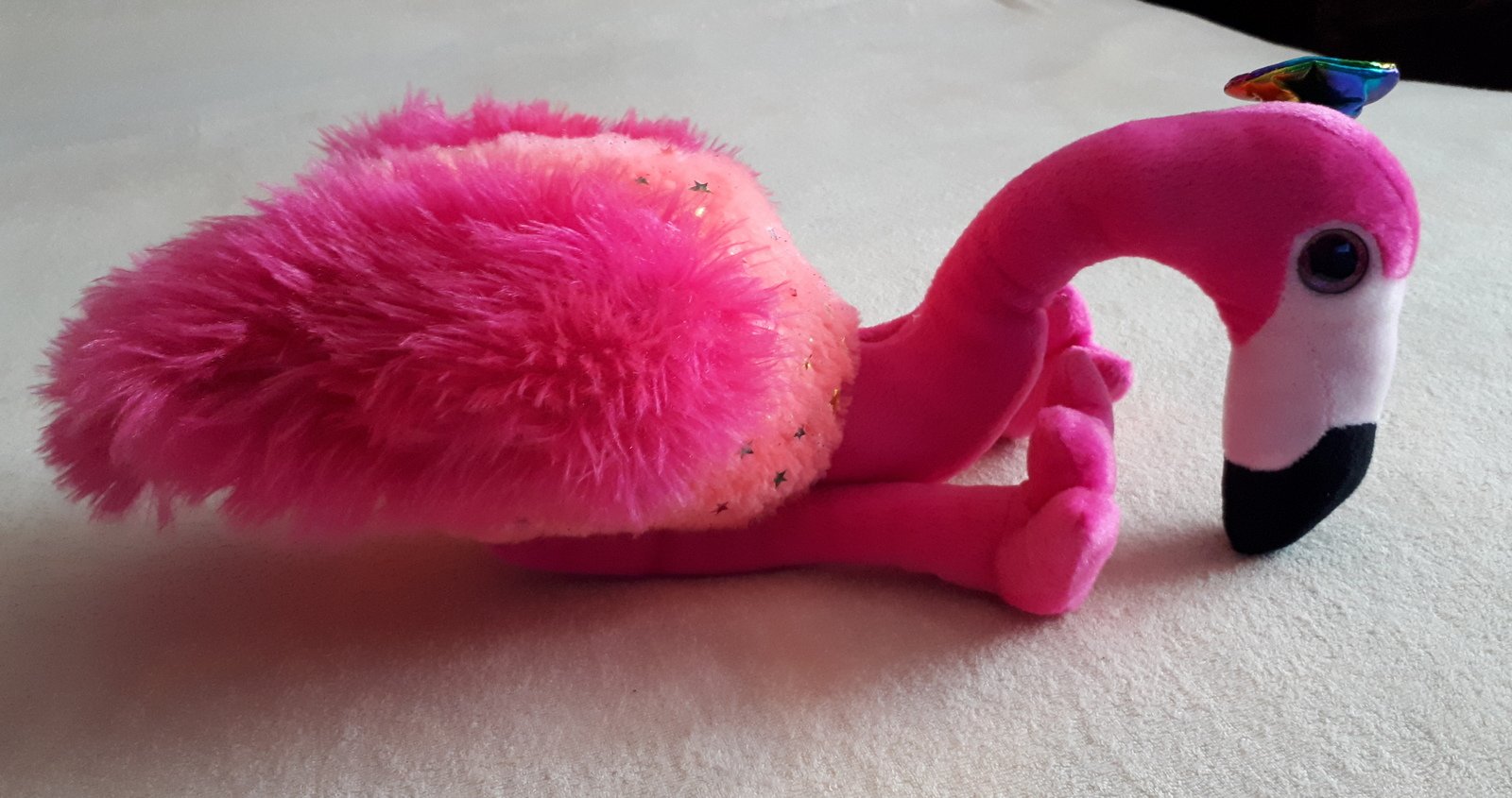 Prodám ve výborném stavu plyšového plameňáka s mašlí.