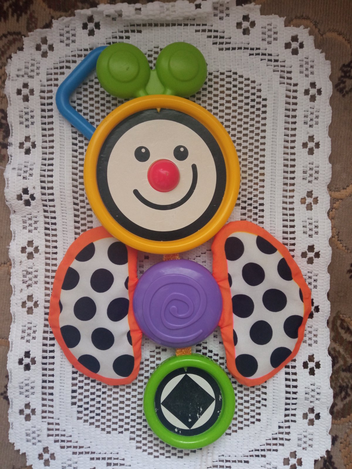 Prodám hezky barevnou hračku,materiál plast a křidélka šustí.Cena 50kč.