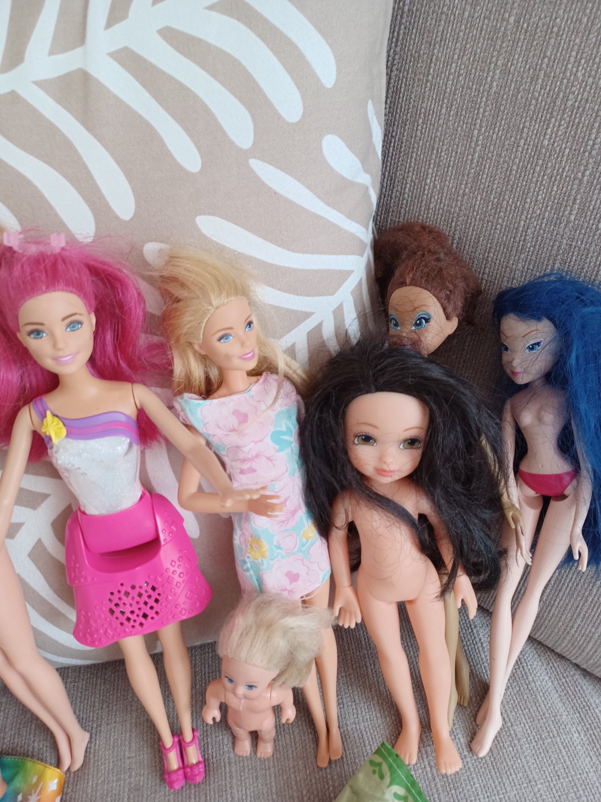 Různé Barbie a panenky, hodně hrané, značkové i neznačkové, oblečky většinou potrhané, přidávám navíc, cena symbolická za vše.